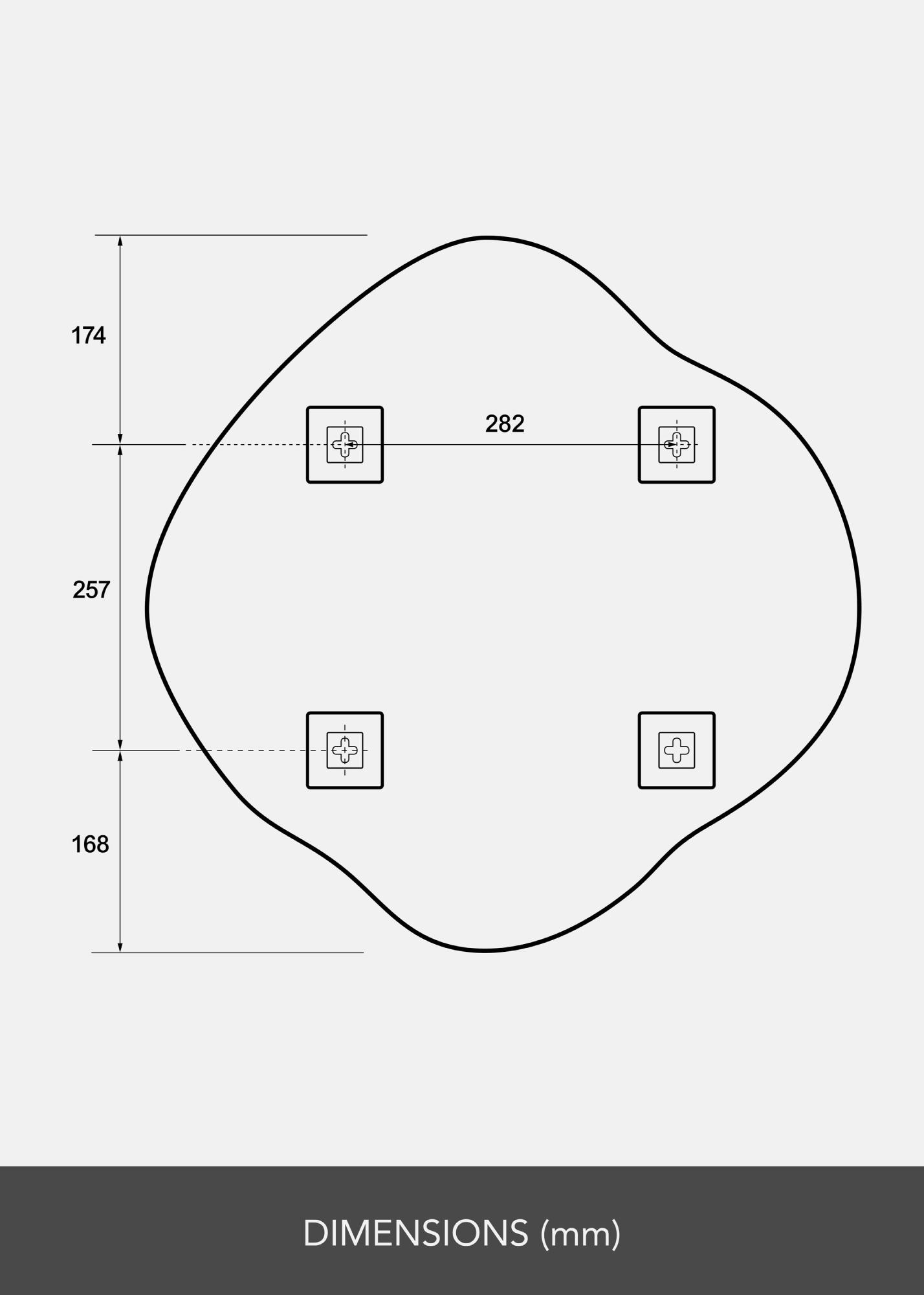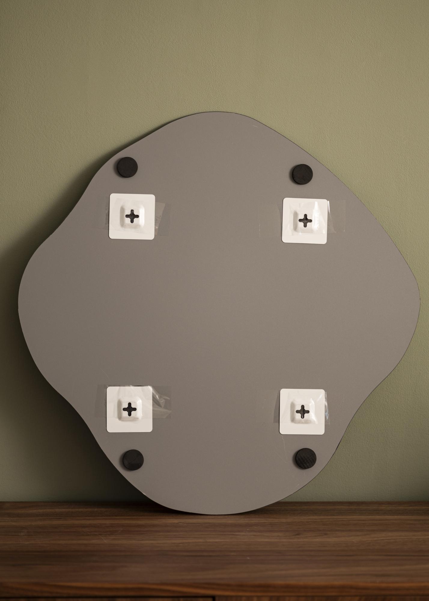 Odkrijte elegantno in vsestransko ogledalo, ki je zasnovano tako, da se prilega vsakemu prostoru v vašem domu. S svojimi velikodušnimi merami 60x60 cm to ogledalo ponuja praktično in dekorativno funkcijo. Njegova edinstvena valovita oblika doda organski pridih in ustvarja sodoben občutek v vaši notranjosti.