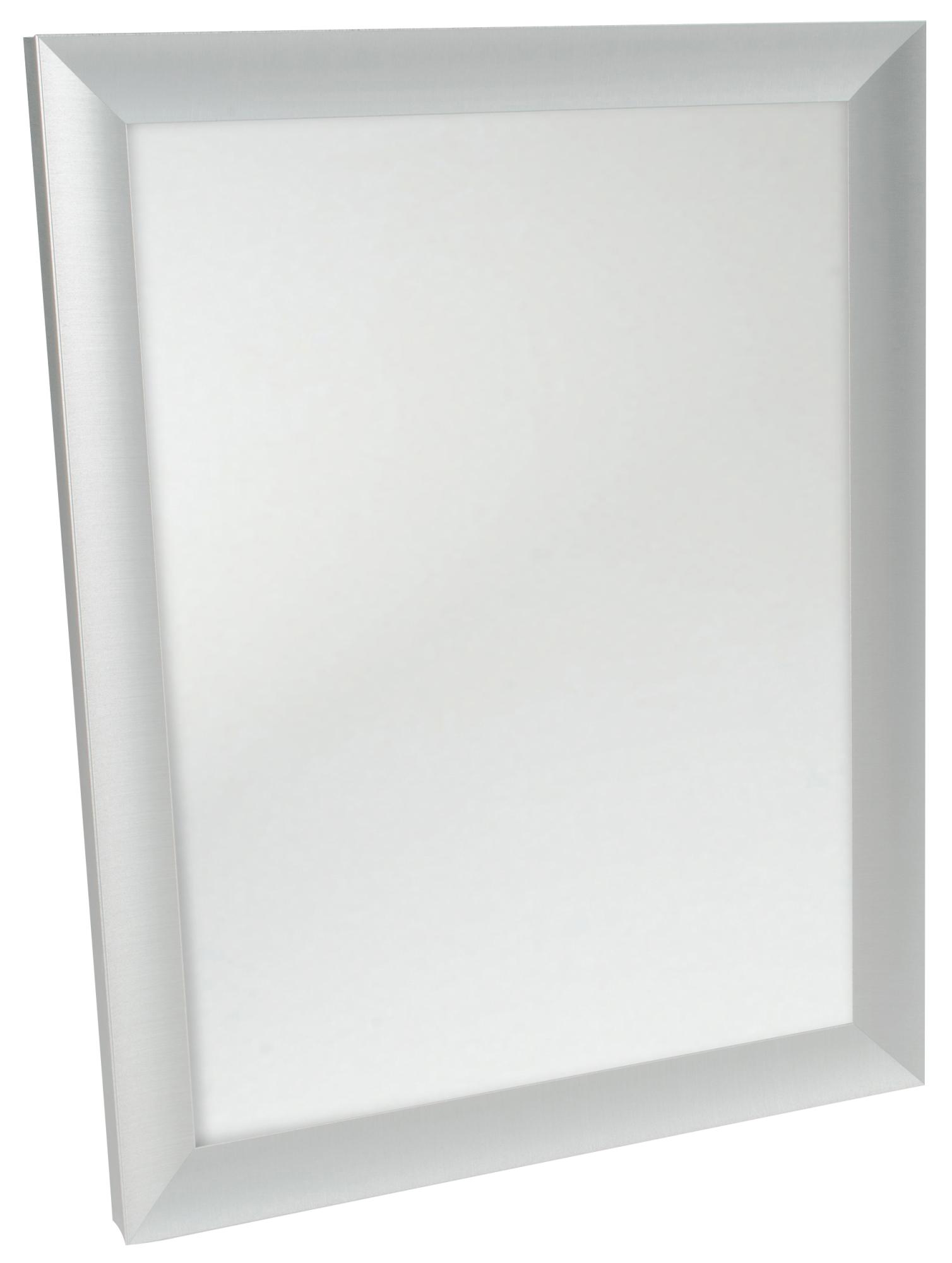 Ogledalo z elegantnim okvirjem iz aluminija v polmat srebrnem tonu, izdelano v Nemčiji. Urejen videz in diskretna srebrna barva ogledala omogočata, da se prilega v vse vrste slogov notranje opreme in okolij, vendar se posebej dobro poda k mehkim barvam ali v okolju z odtenki zgolj sive lestvice. Kombinirajte ogledalo s slikami z okvirji v srebrni, črni ali beli barvi ali obesite nad eleganten stranski regal kot osrednjo točko.