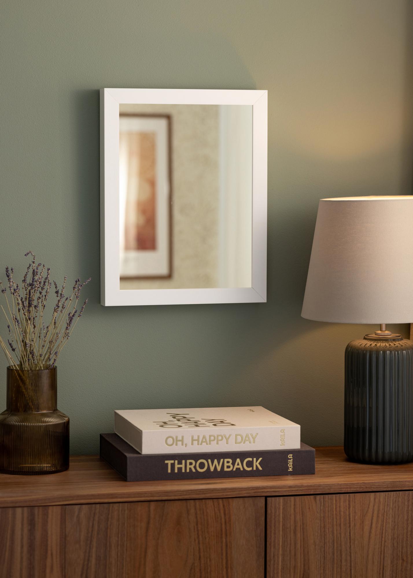 To ogledalo ima elegantno belo barvo, ki se ujema z večino notranjih stilov. 30 mm širok okvir daje ogledalu eleganten in diskreten okvir, medtem ko 50 mm globina ustvarja robusten in trden vtis. Izdelano iz bora, ogledalo ponuja tako trpežnost kot naraven občutek, ki dopolnjuje njegovo moderno zasnovo.