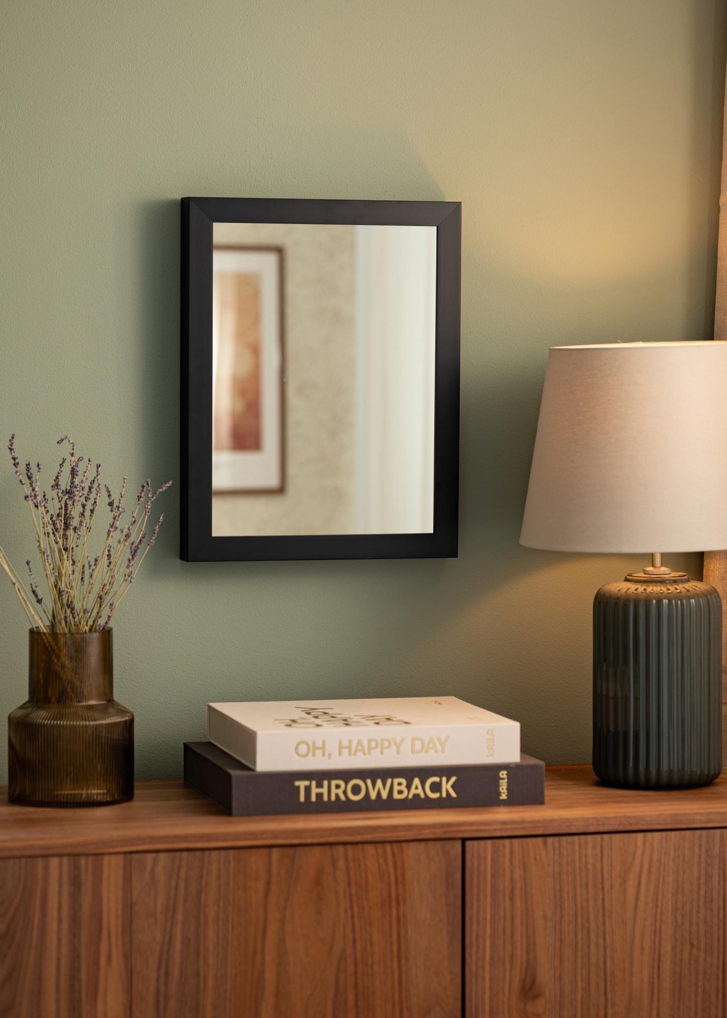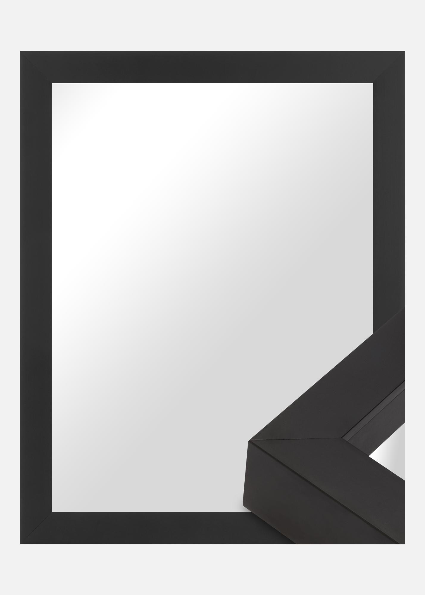 To ogledalo ima elegantno črno barvo, ki daje sofisticiran in eleganten vtis v vsakem prostoru, kjer je postavljeno. 30 mm širok rob okvirja okusno obroblja ogledalo in prispeva k njegovemu modernemu videzu. Z globino 50 mm ogledalo daje občutek robustnosti, medtem ko ohranja svojo eleganco.