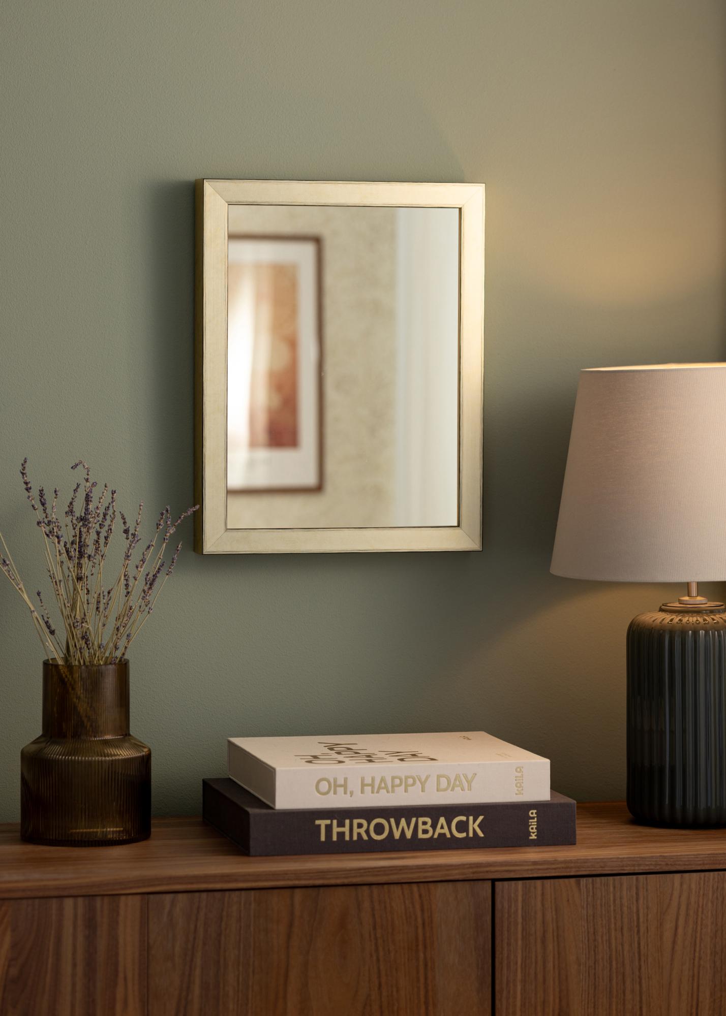 Okvir zrcala Tyr Zlato je širok 30 mm in globine 50 mm, kar daje zrcalu robusten in čvrst občutek. Izdelan iz bora, združuje trpežnost in estetiko. Subtilna patina na okvirju daje zrcalu edinstven značaj, ne da bi prevzela prostor, kar ga naredi za odlično izbiro za vse vrste notranje opreme.