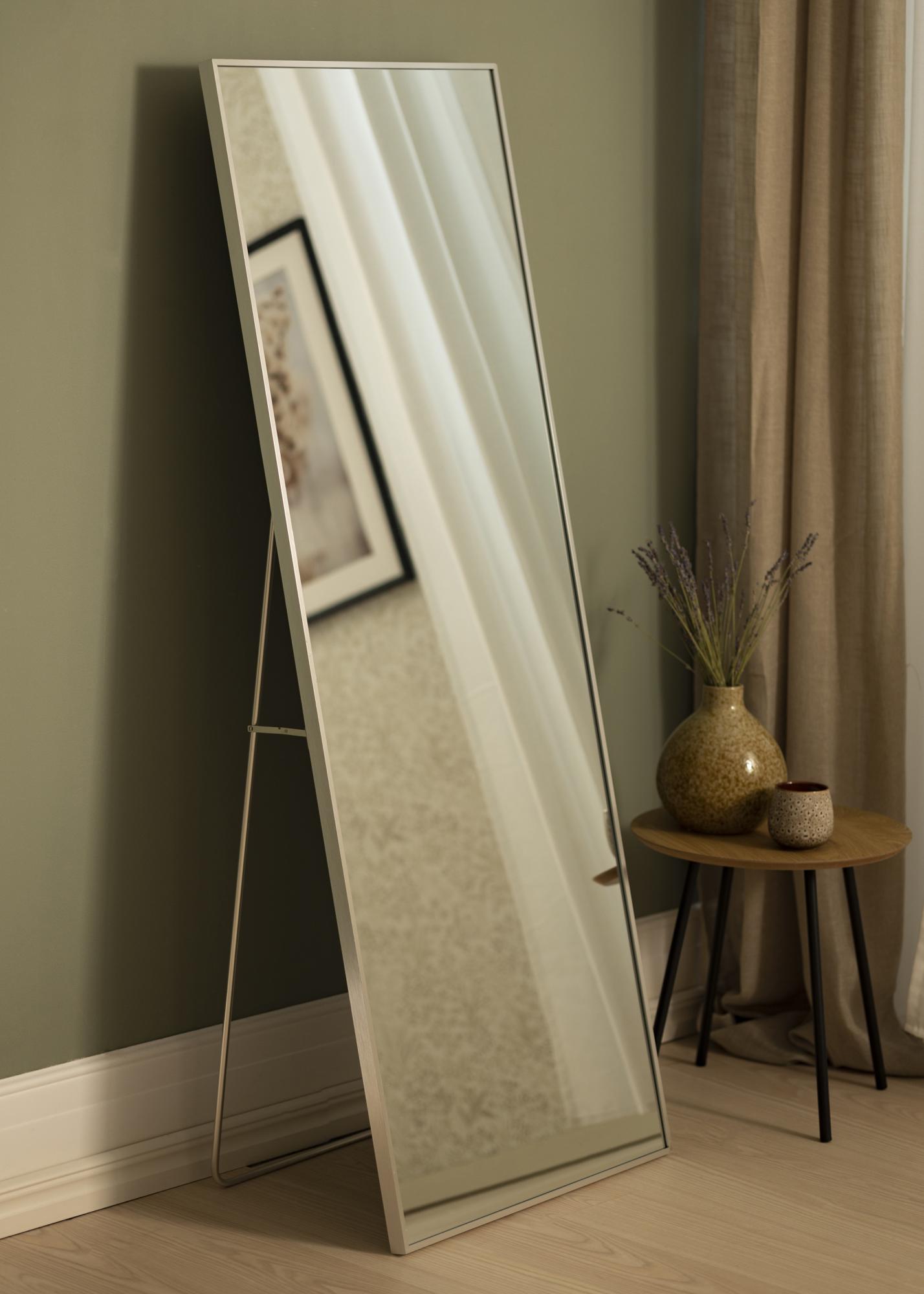 Odkrijte eleganco in funkcionalnost z našim prostostoječim ogledalom, popolno kombinacijo stila in praktične zasnove. S svojimi velikimi merami 55x150 cm to ogledalo ponuja popoln odsev vaše silhuete, kar ga naredi za nepogrešljiv dodatek v vaši spalnici ali garderobi.