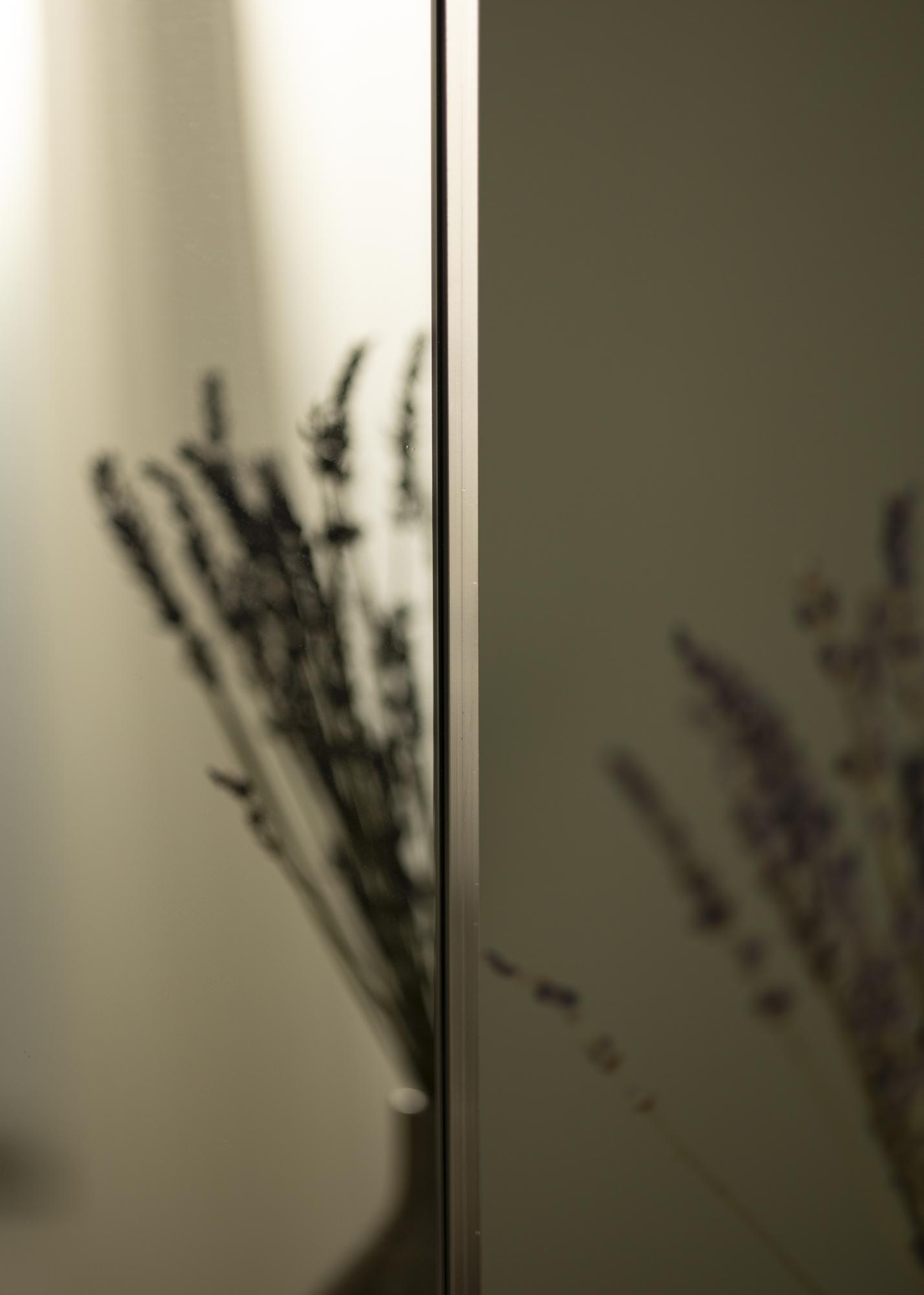 To ogledalo je okrašeno s tankim, srebrno obarvanim aluminijastim okvirjem, ki dodaja pridih prefinjenosti vaši notranji opremi. Njegova pravokotna oblika je tako brezčasna kot sodobna, in se prilega različnim slogom notranje opreme. Minimalistična zasnova ogledala omogoča, da se zlije s prostorom, hkrati pa izstopa kot eleganten detajl.