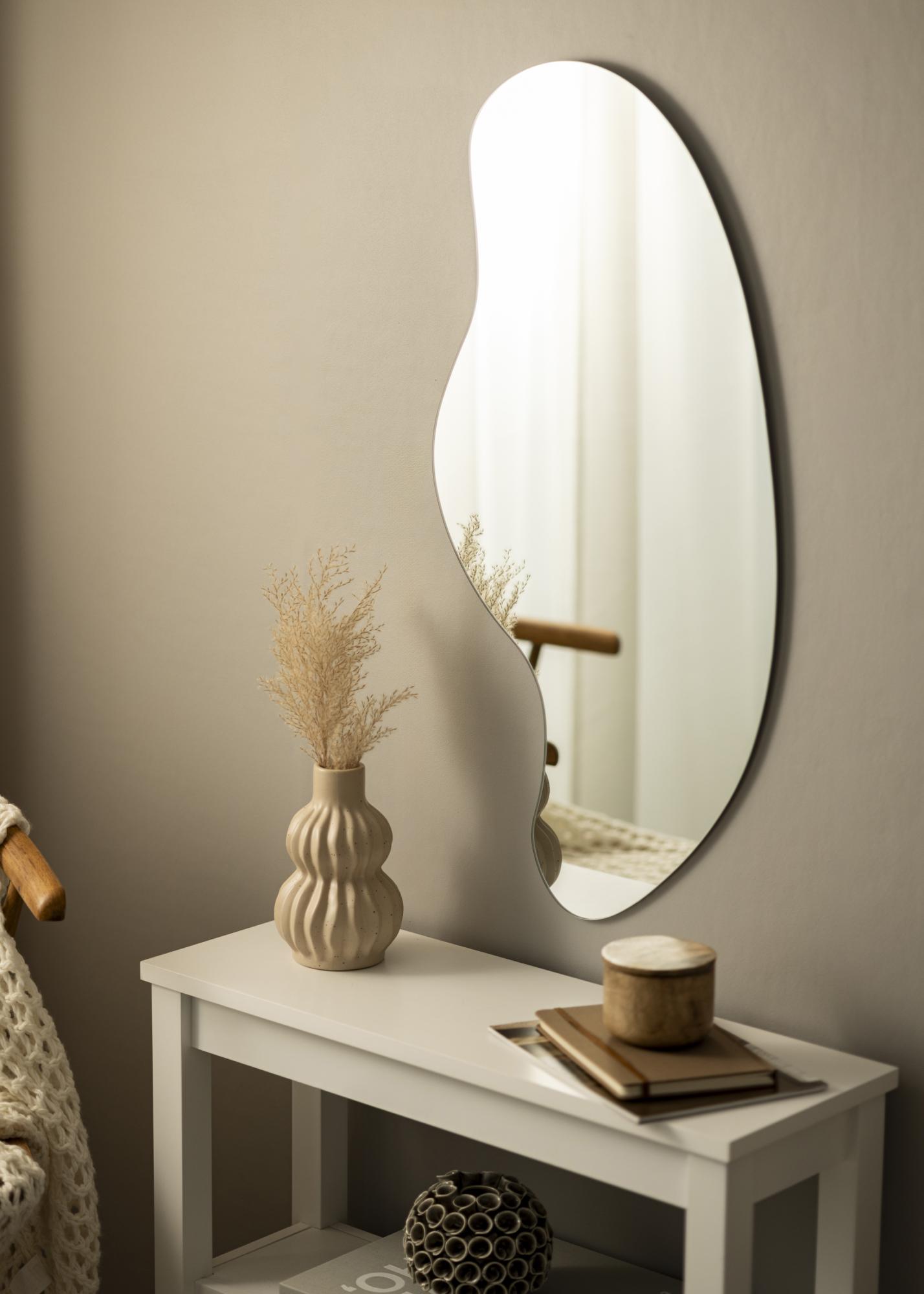 Wavy Cloud je ogledalo z edinstveno zasnovo in visoko eleganco – popolno za tiste, ki iščejo osebni dekorativni element. Posebna oblika, s klasično zaobljeno stranjo in stranjo z valovito obliko, ustvarja eleganten celostni videz. Ogledalo je brez okvirja in ima tanko zrcalno steklo le 4 mm, kar dodatno povečuje občutek elegance. To stensko ogledalo ima dimenzije 40x80 cm.