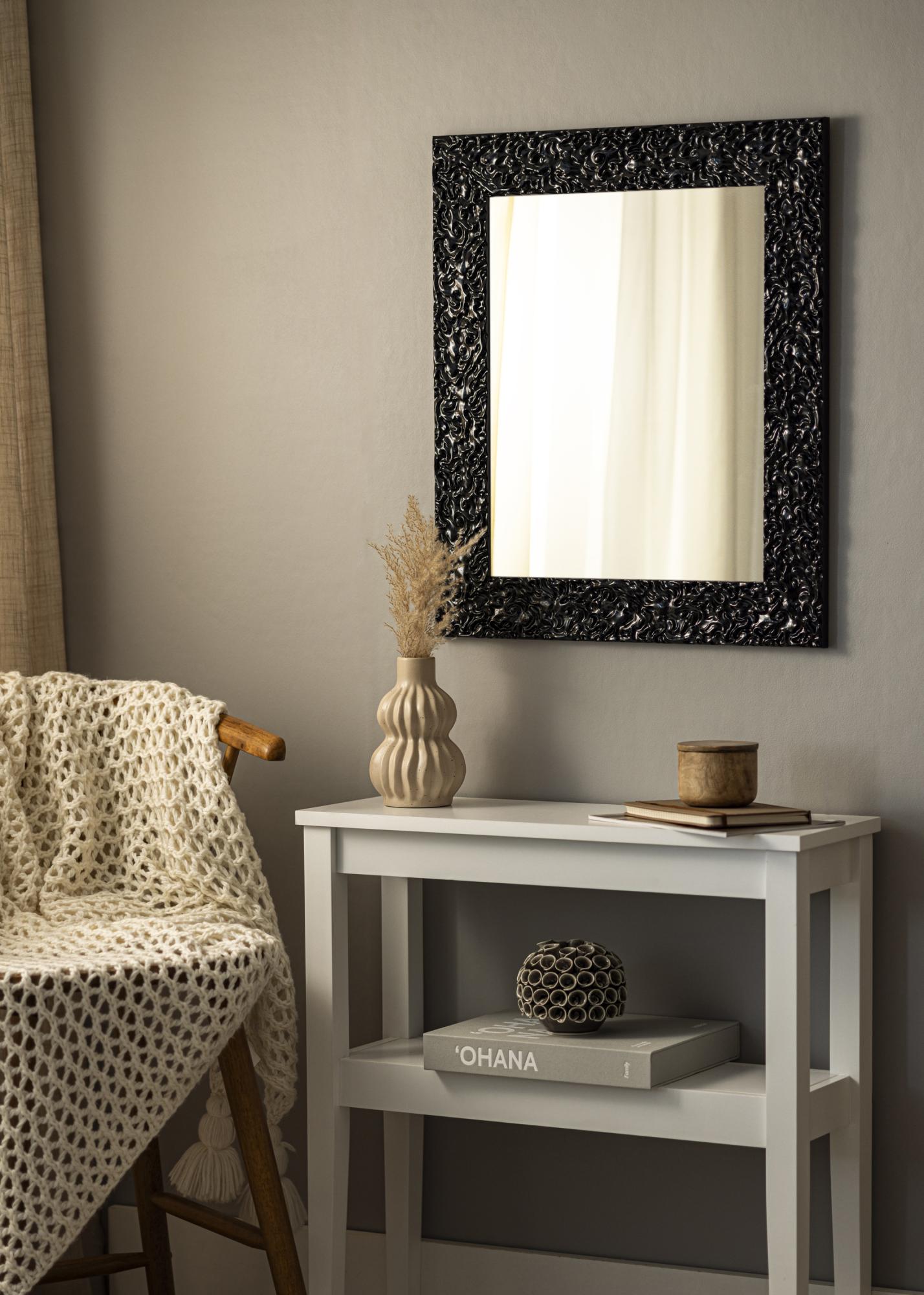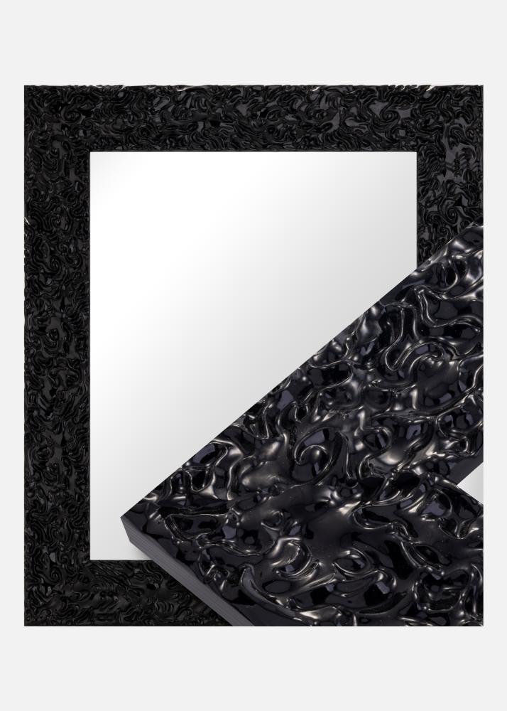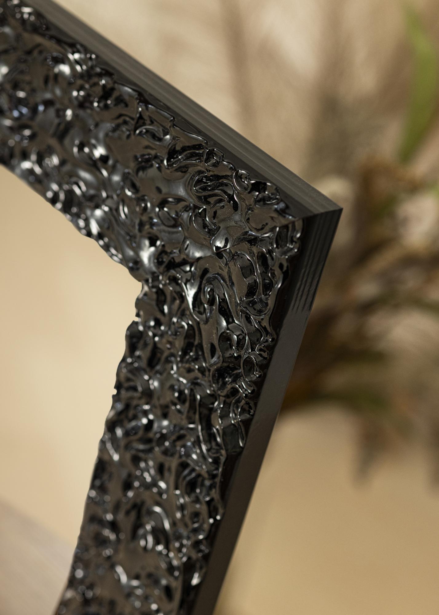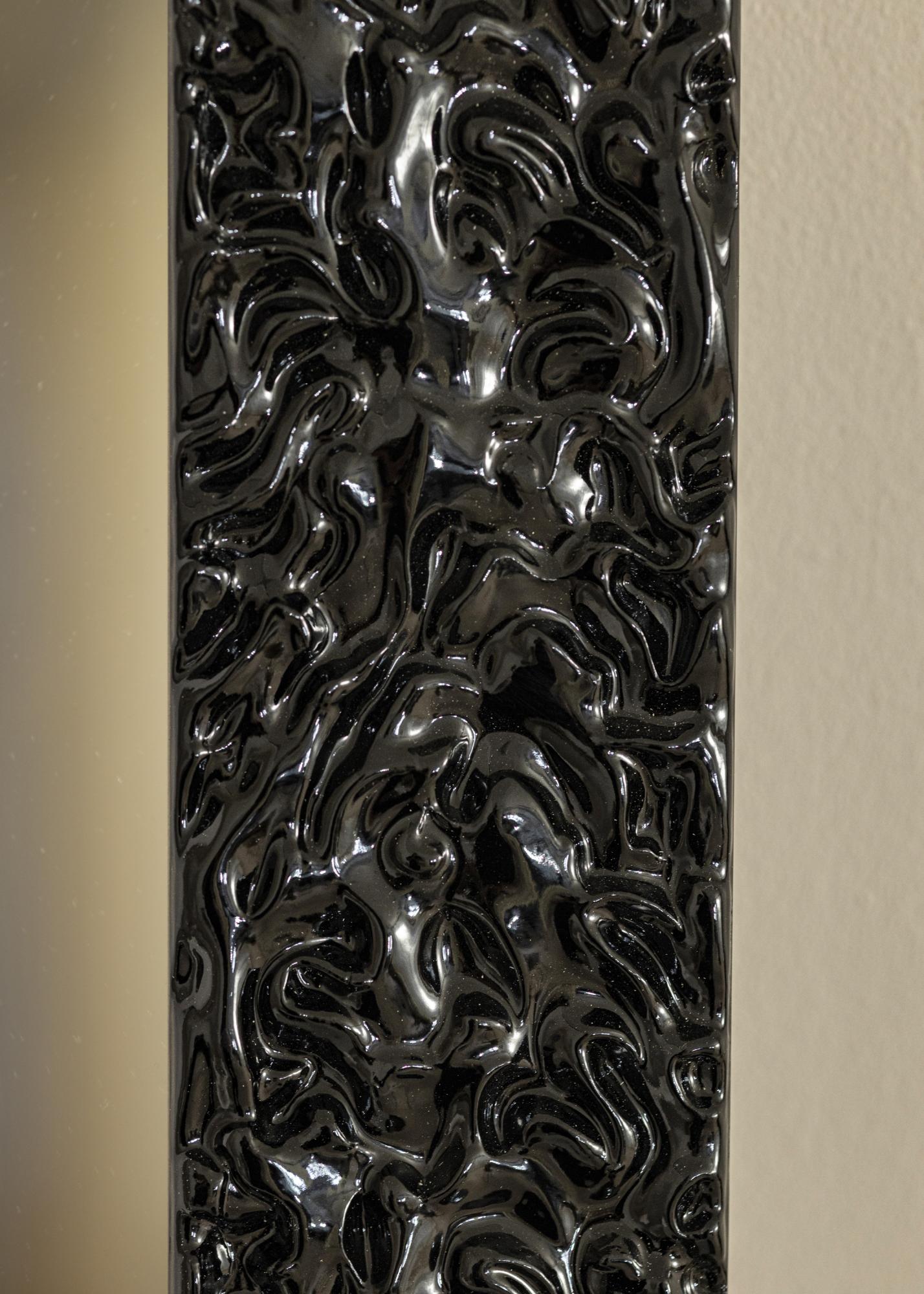 Ogledalo Westminster Črna je ogledalo po meri, ki ga izdelujemo sami, kar pomeni, da ga lahko dobite v natančnih dimenzijah, ki se najbolj prilegajo vašemu domu. S svojo globoko črno barvo in sijočo površino postane to ogledalo eleganten dodatek kateremukoli prostoru. 81 mm širok okvir zagotavlja trdno obrobo ogledalu, medtem ko organski vzorec na površini ustvarja živahen in dramatičen učinek.