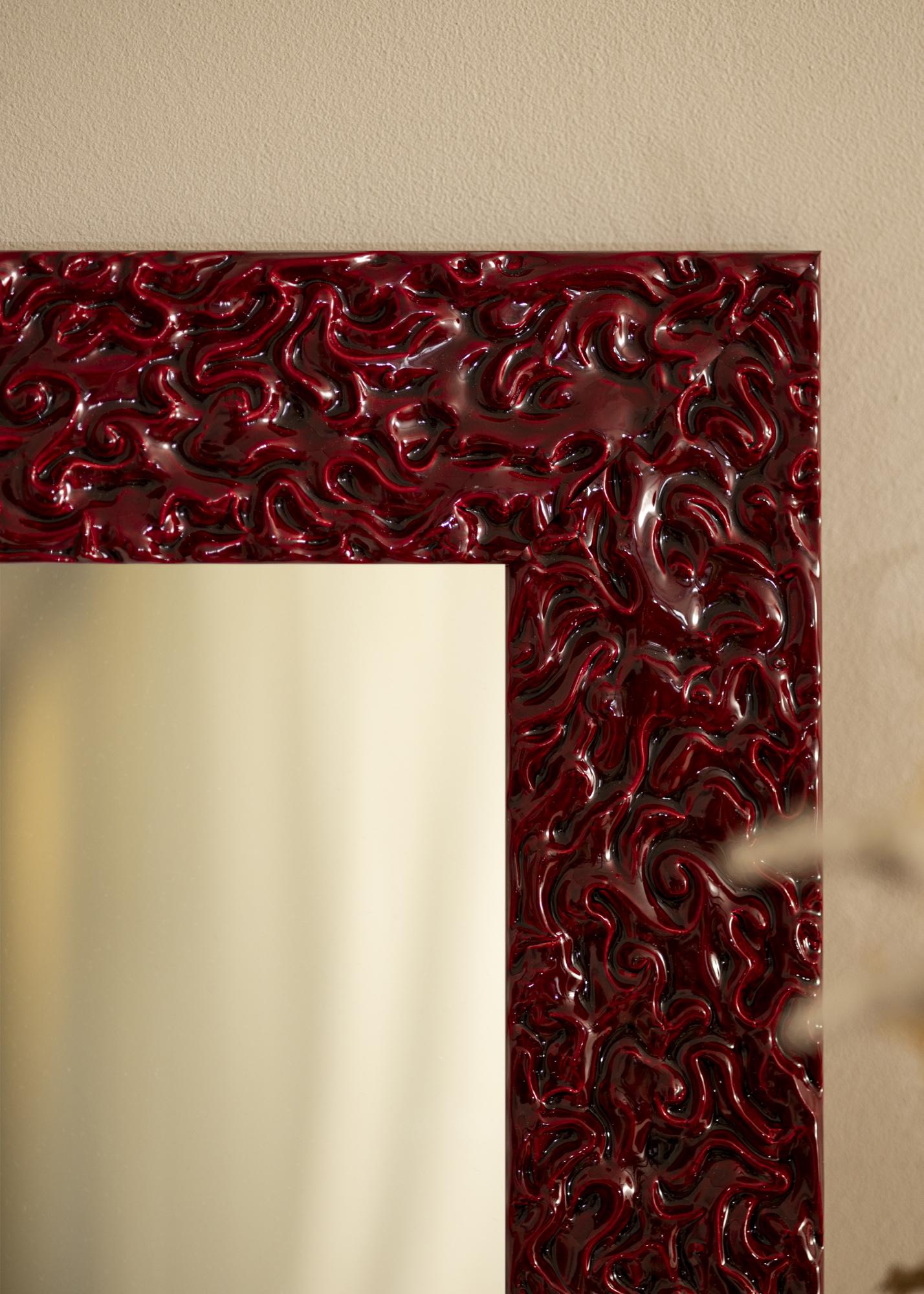 Ogledalo Westminster Rdeča je ogledalo po meri, ki ga izdelamo mi, da se popolnoma prilagodi vašim potrebam. S svojo drzno in živahno rdečo barvo postane opazen element v vsakem prostoru. Lakirana površina daje ogledalu sijajen zaključek, ki poudarja njegovo edinstveno, organsko reliefno strukturo. To ustvarja dramatičen in sodoben pridih, ki zagotovo pritegne poglede.