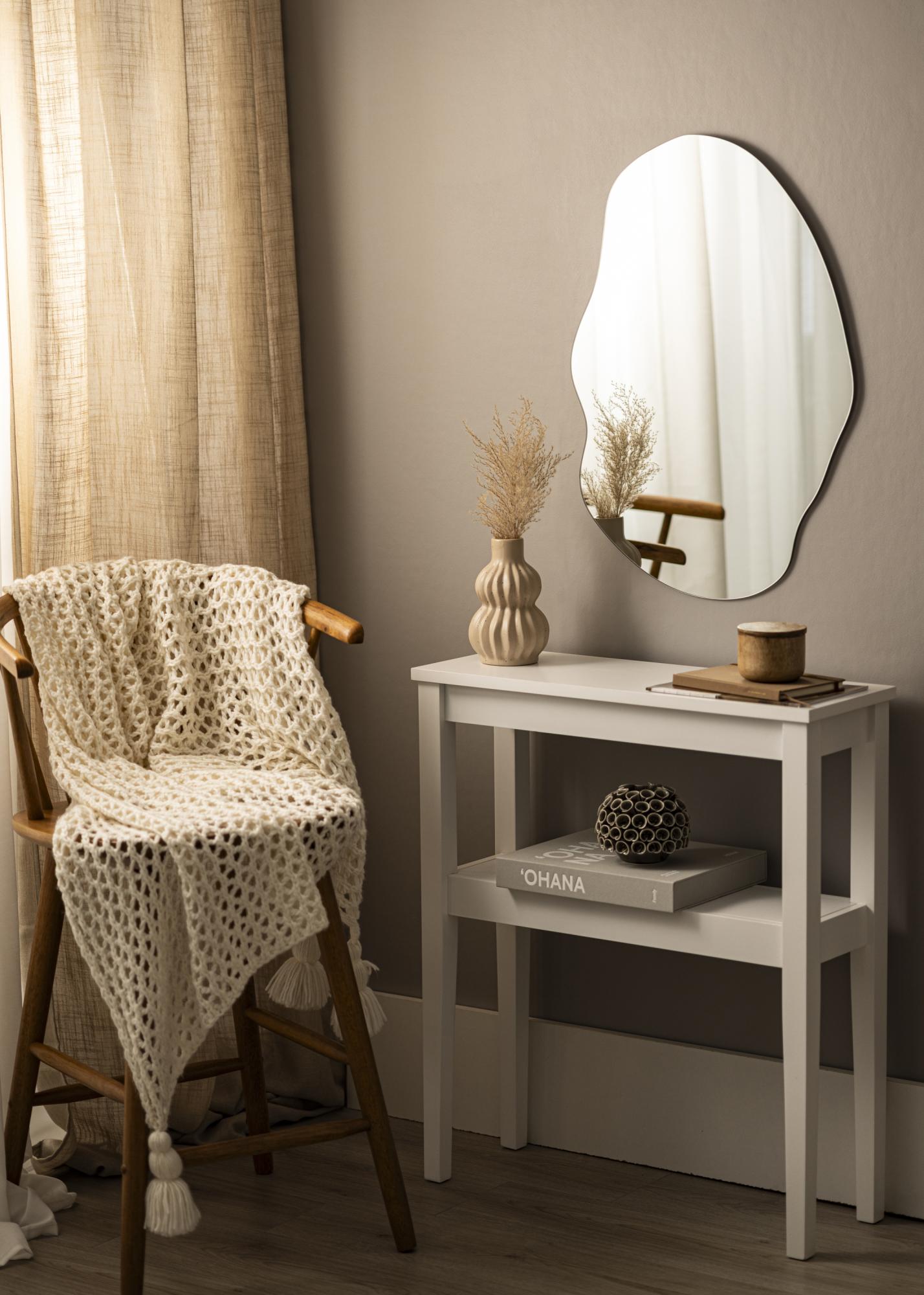 Ali imate veliko klasičnih oblik v vaši notranjosti, kot so kvadratne mize ali okrogle preproge? Potem je ogledalo z drugačno obliko odličen dodatek za ustvarjanje več dinamičnosti v prostoru. Wide Cloud je stensko ogledalo velikosti 50x70 cm z oblikovanjem, navdihnjenim z oblaki. Njegova lepo valovita oblika je zelo elegantna, tanko steklo ogledala pa še dodatno poudari prefinjen občutek.