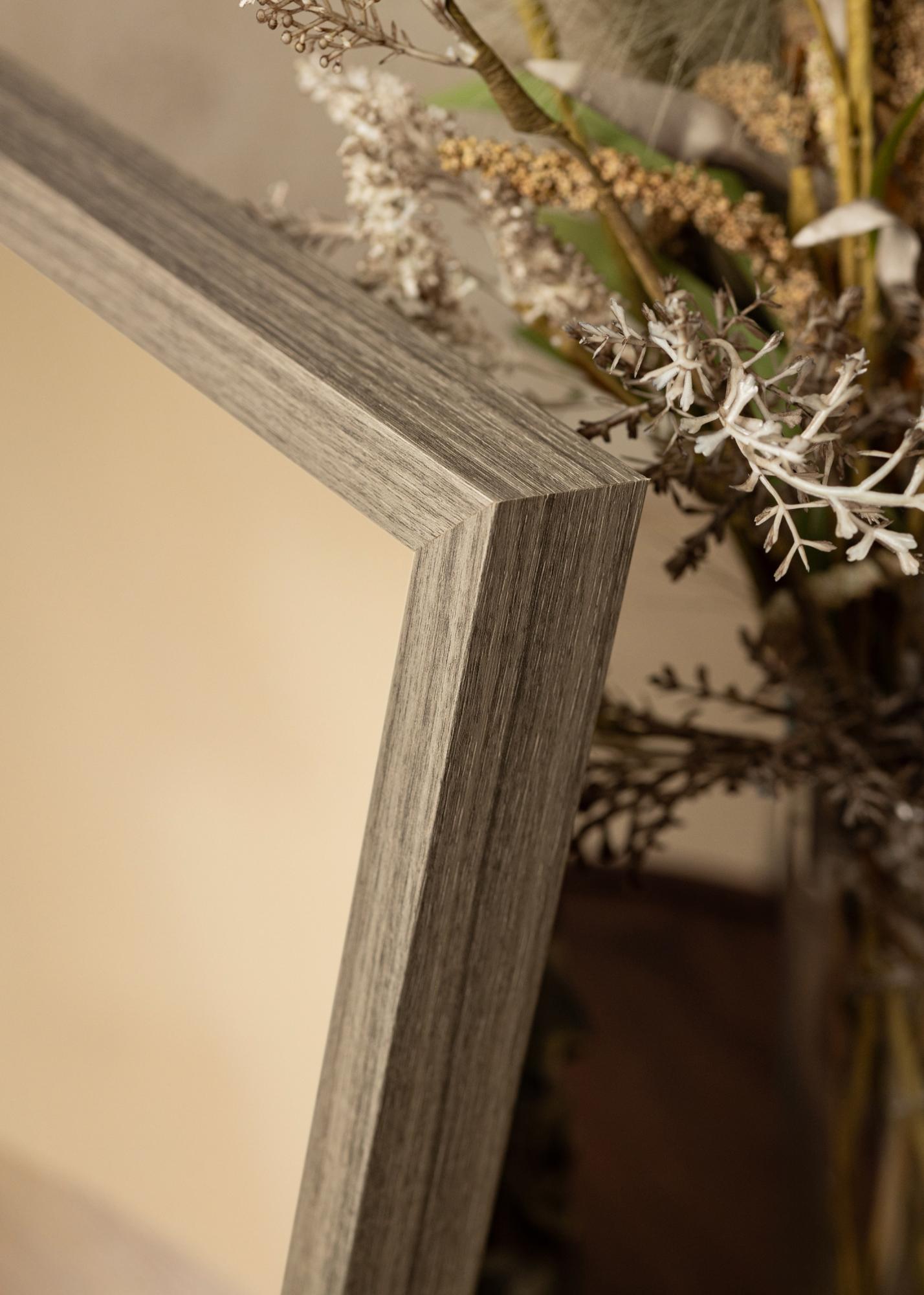 Ogledalo Wood Selection Grey II je ogledalo po meri, ki ga izdelujemo posebej za vas, da ustreza vašim potrebam. S svojo sivkasto leseno zasnovo in jasno vidno strukturo lesnih vlaken to ogledalo ponuja naraven in eleganten občutek, ki se zlahka prilega različnim stilom notranje opreme. Mat zaključek poudarja strukturo lesa in zagotavlja harmoničen izraz, ki je primeren tako za sodobna kot klasična okolja.