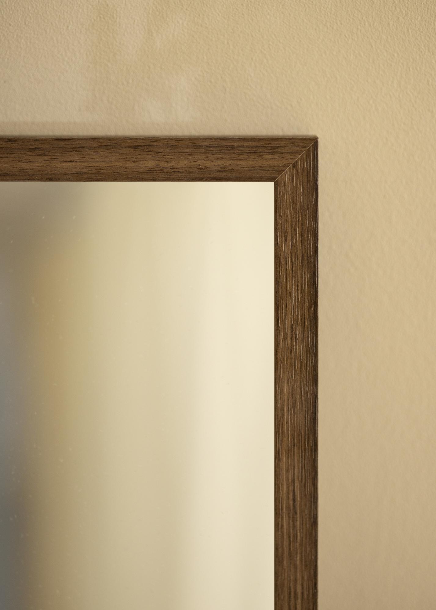 Okvir ogledala je 21 mm širok in ima globino 38 mm, kar zagotavlja stabilen in robusten občutek, ne da bi pri tem ogrozili elegantno obliko. Ravni robovi in ozek profil prispevajo k sodobnemu in elegantnemu videzu, ki se prilega tako klasičnim kot modernim notranjostim.