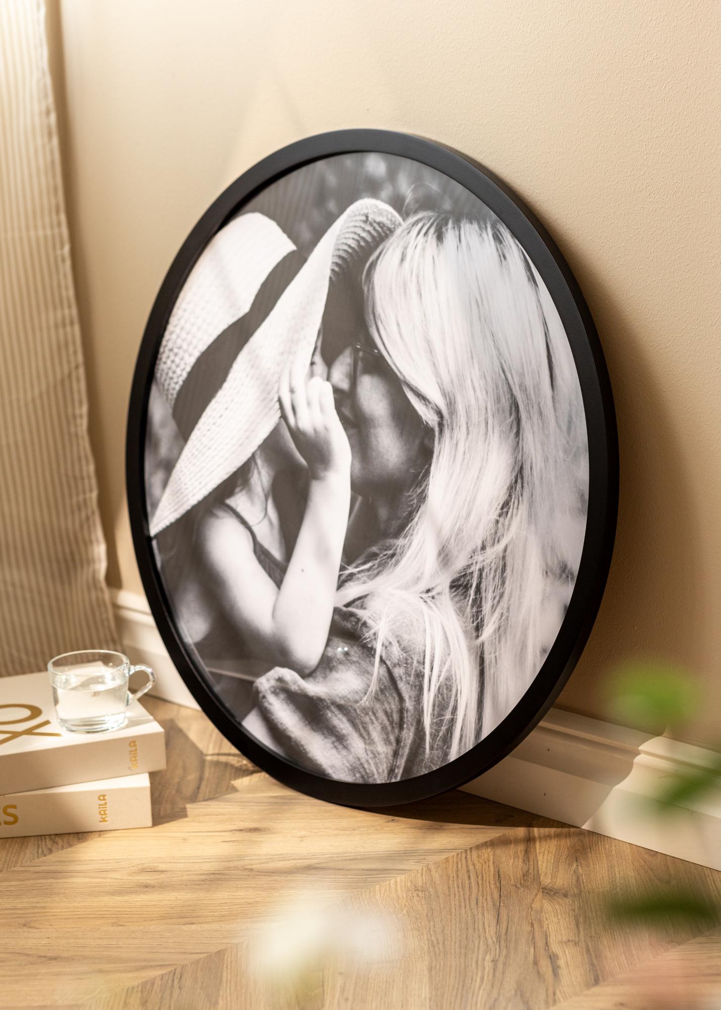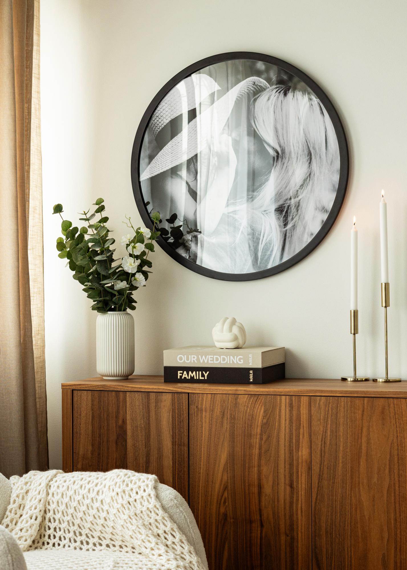 Dajte svojim stenam sodoben pridih s to elegantno okroglo črno fotookvirico. S premerom 70 cm Ø bo jasno izstopala v vsakem prostoru. Tanka širina okvirja, ki je 25 mm, dopolnjuje motiv brez prevlade, medtem ko globina okvirja 18 mm zagotavlja izrazit profil.