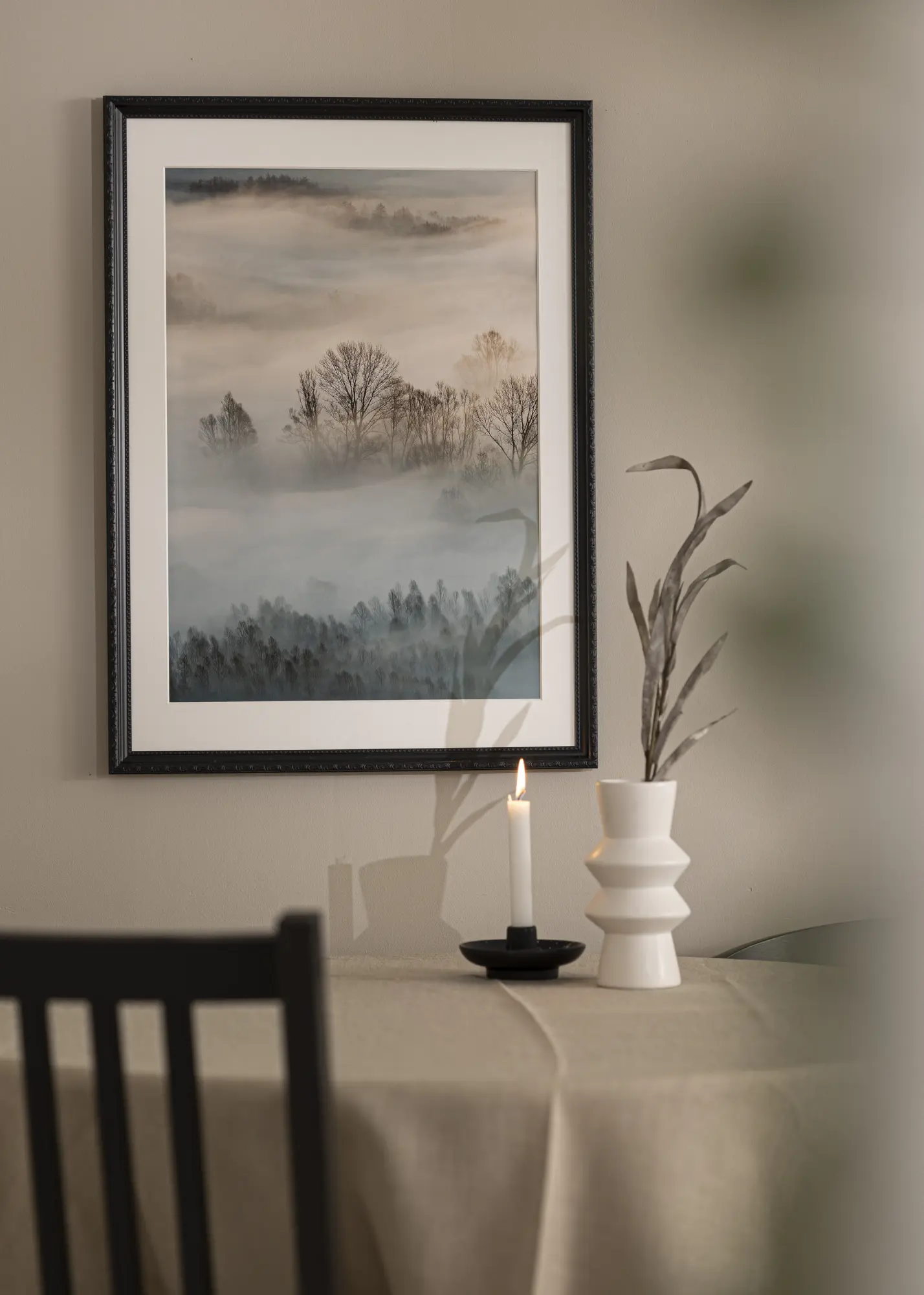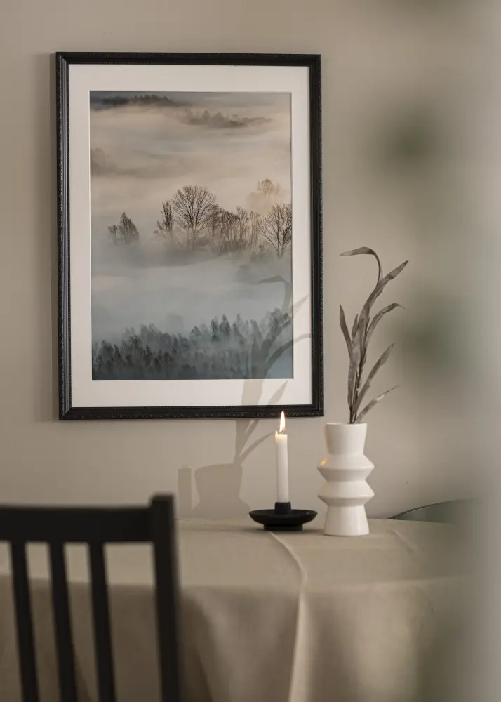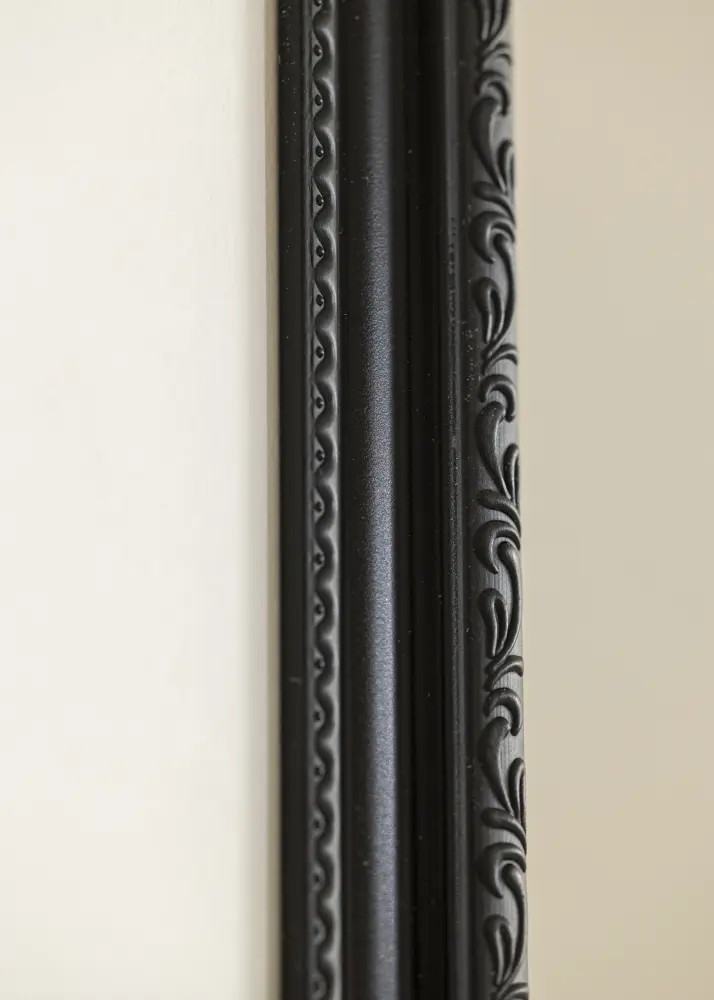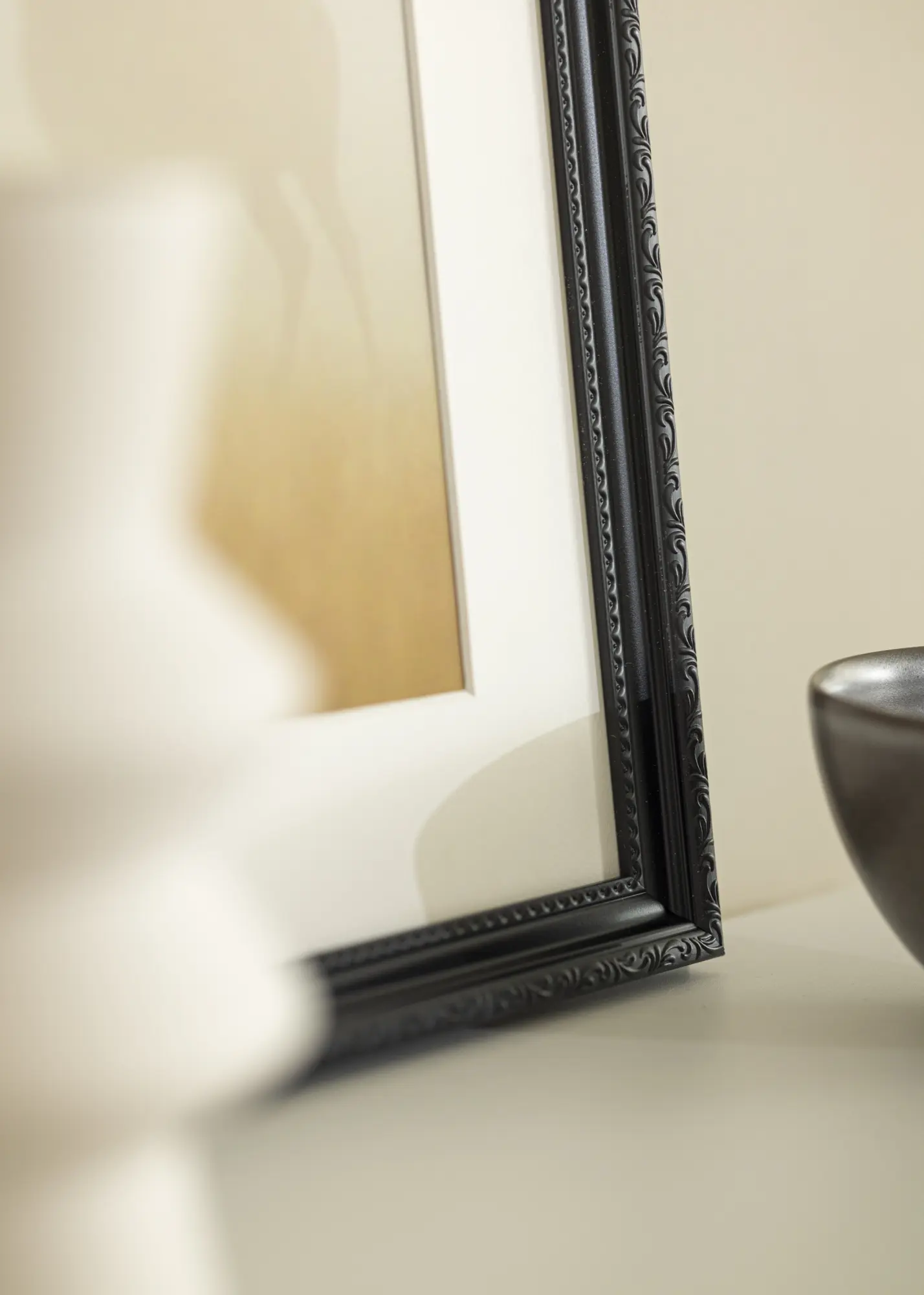 Abisko Akrilno steklo Črna je elegantni okvir visoke kakovosti, izdelan na Švedskem. Črni okvir za slike je okrašen z dekorativnimi vzorci, tako na zunanjem robu okvirja kot tudi blizu slike. Čudovita okrasitev na 25 mm široki letvi okvirja ga naredi za eleganten dodatek vašem domu, ki popolnoma dopolnjuje tako klasične kot moderne motive. Mogoče imate impresiven plakat z abstraktnim vzorcem, ki ga želite obesiti? Ali črno-belo fotografijo?