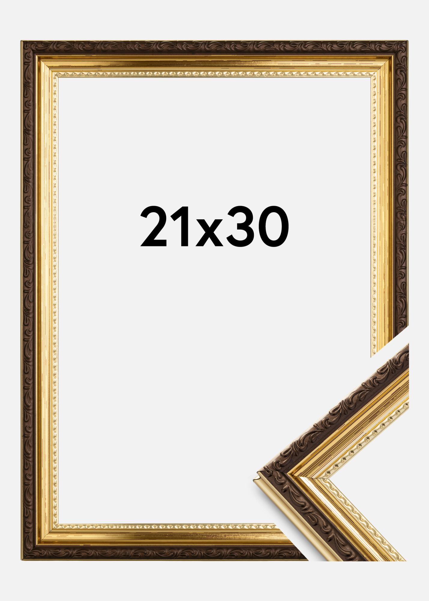 Iščete lepo okrašen okvir v starejši slogi? Abisko Akrilno steklo Zlato je trden zlat okvir z neverjetno elegantnimi ornamenti. 25 mm širok seznam okvirja ima sijajno zlato barvo s krasnim rjavim robom v sredini. Tudi zlati del je okrašen z valovitim vzorcem najbližje steklu.