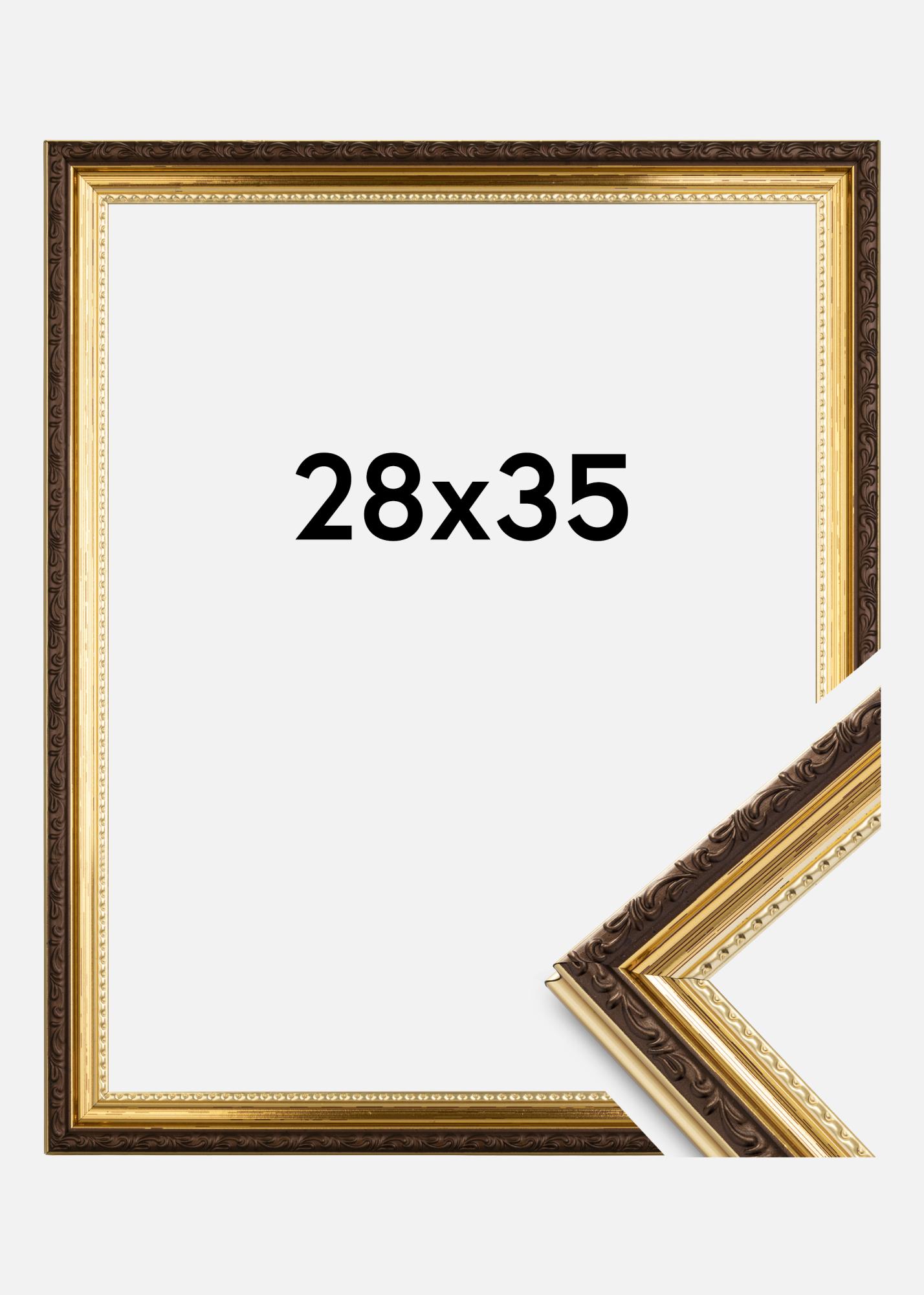 Iščete čudovito okrašen okvir v starejšem slogu? Abisko Akrylno steklo Zlato je trden zlat okvir z izjemno elegantnimi okraski. 25 mm širok rob okvira ima sijočo zlato barvo z okrašenim rjavim robom v sredini. Tudi zlati del je okrašen, z valovitim vzorcem najbližje steklu.