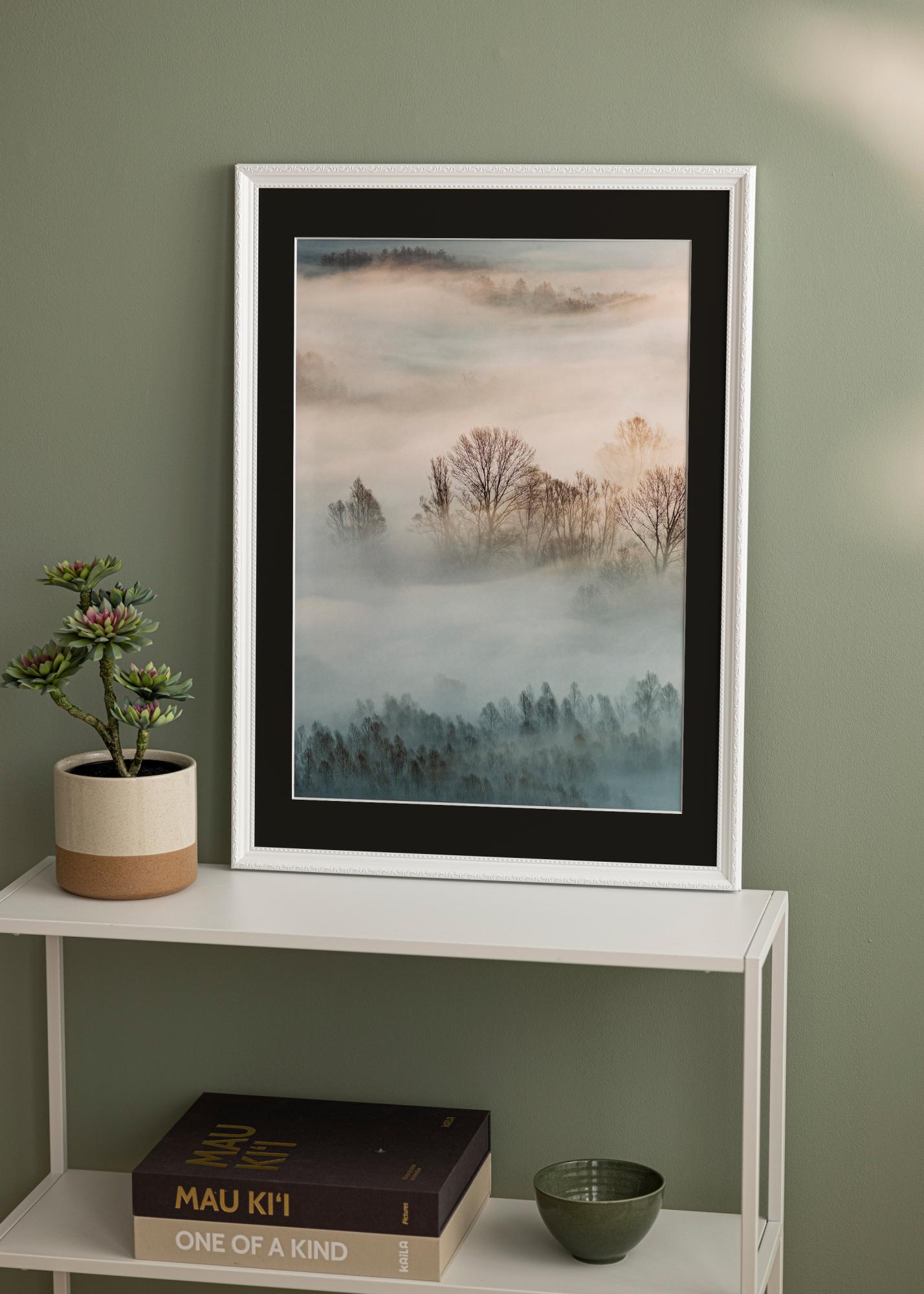 Dajte svojim najljubšim slikam pozornost, ki si jo zaslužijo, z elegantnim belim okvirjem, dopolnjenim s črno paspartu. Ta sofisticirana kombinacija poudarja kontrast in globino vaše fotografije ali umetnine, hkrati pa ščiti pred neposrednim stikom s steklom. Z velikostjo okvirja, prilagojeno slikam 8x10 palcev, paspartu omogoča profesionalno uokvirjanje in vizualni predah, ki usmerja pogled opazovalca na motiv.