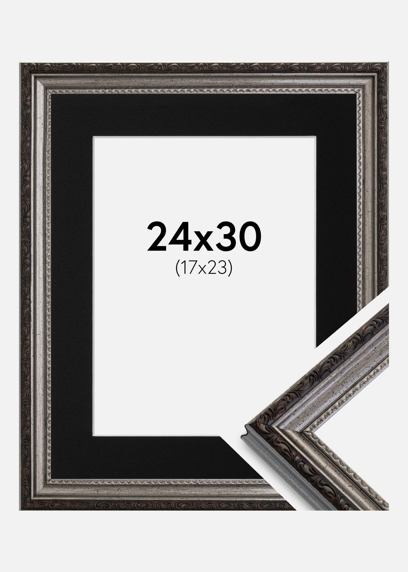 Okvir Abisko Srebrna 24x30 cm - Paspartŭ Črna 18x24 cm
