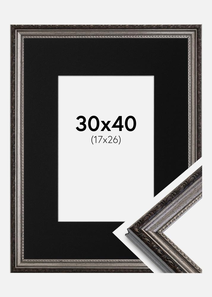 Okvir Abisko Srebrna 30x40 cm - Paspartŭ Črna 18x27 cm