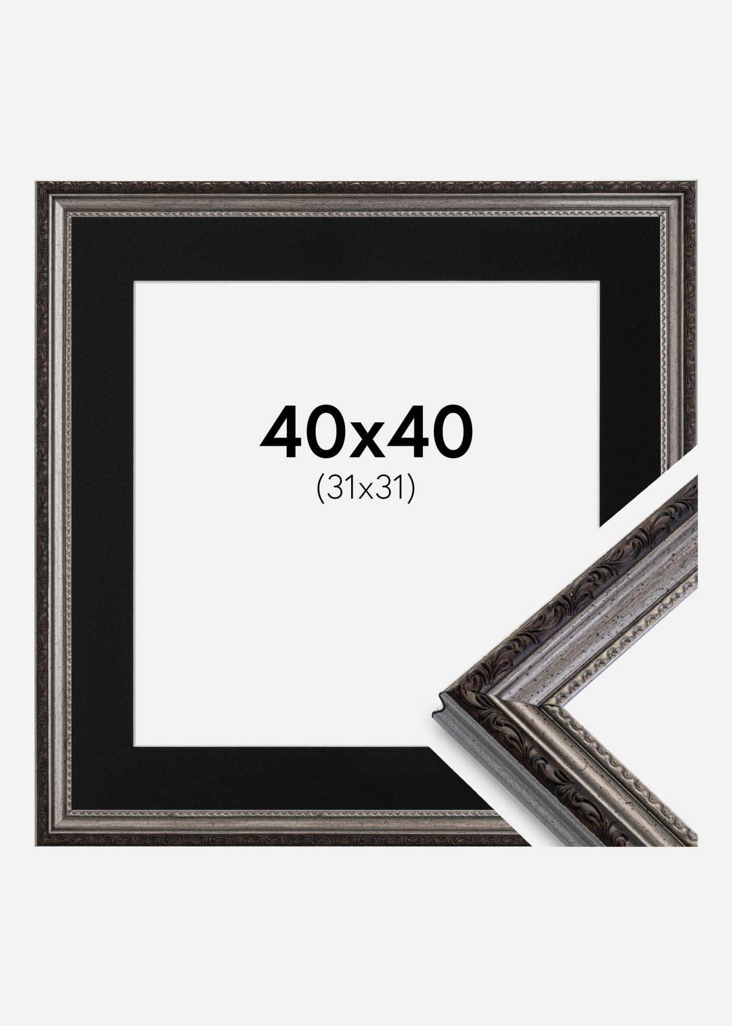 Okvir Abisko Srebrna 40x40 cm - Paspartŭ Črna 32x32 cm