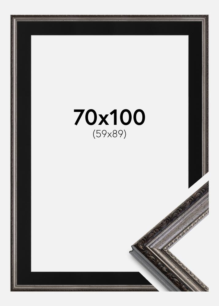 Okvir Abisko Srebrna 70x100 cm - Paspartŭ Črna 60x90 cm