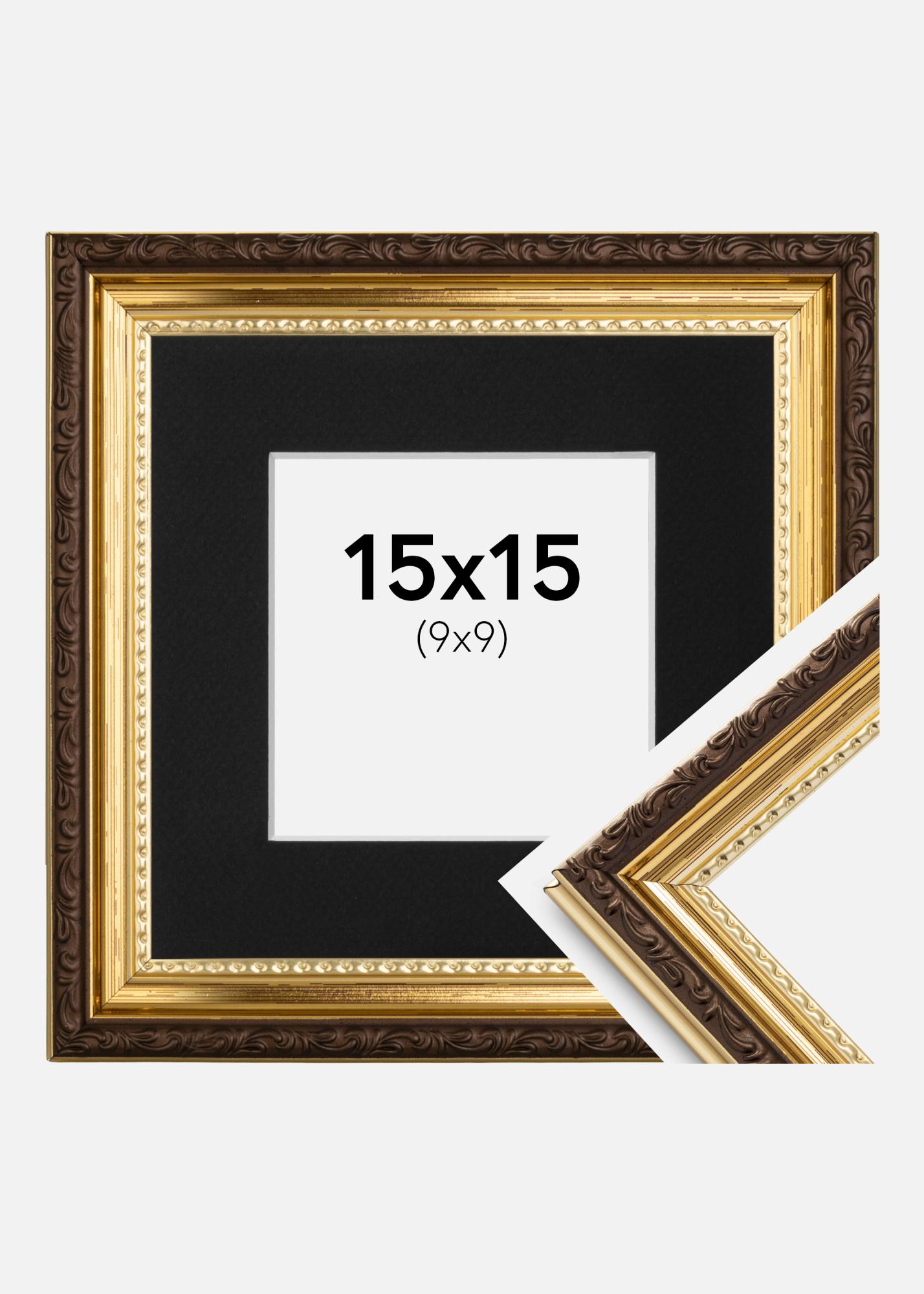 Okvir Abisko Zlata 15x15 cm - Paspartŭ Črna 10x10 cm