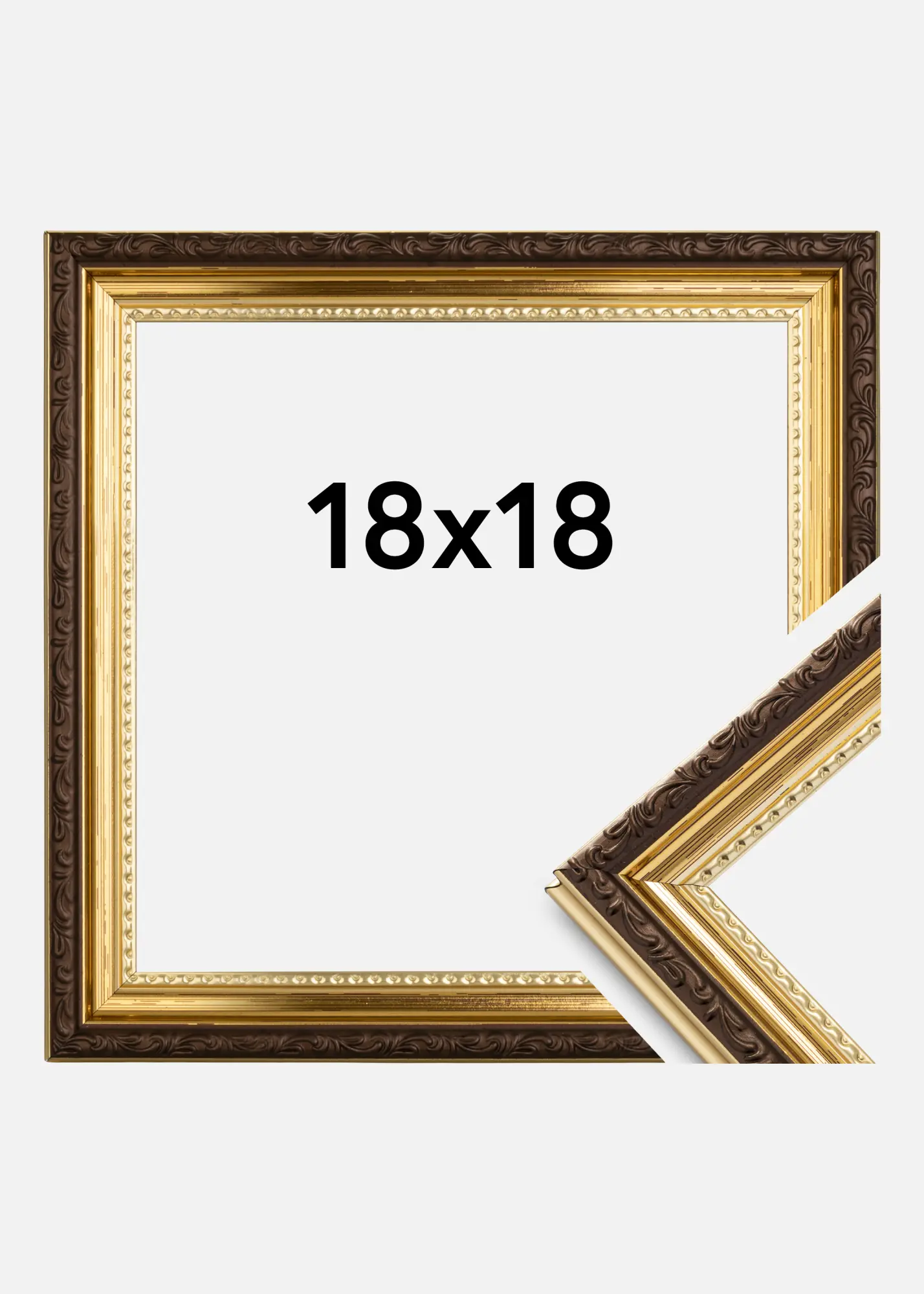 Abisko je eleganten zlato obarvan okvir za fotografije v retro stilu s čudovitimi okraski. Okvir je iz bleščečega zlata z rdečimi vložki in ima lepo okrašeno zunanjo letvico v topli rjavi barvi. Odlično se prilega, če iščete stilsko zlati okvir v starejšem slogu.