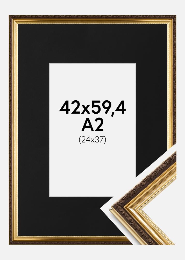 Dajte svojim najljubšim slikam pozornost, ki si jo zaslužijo, s elegantnim zlatim okvirjem, ki vsebuje črno paspartu. Ta prefinjena kombinacija poudarja kontrast in globino vaše slike ter ustvarja profesionalno in urejeno predstavitev. Paspartu ni samo estetsko privlačen, ampak tudi ščiti vašo sliko, saj jo drži proč od stekla, kar podaljšuje njeno življenjsko dobo.