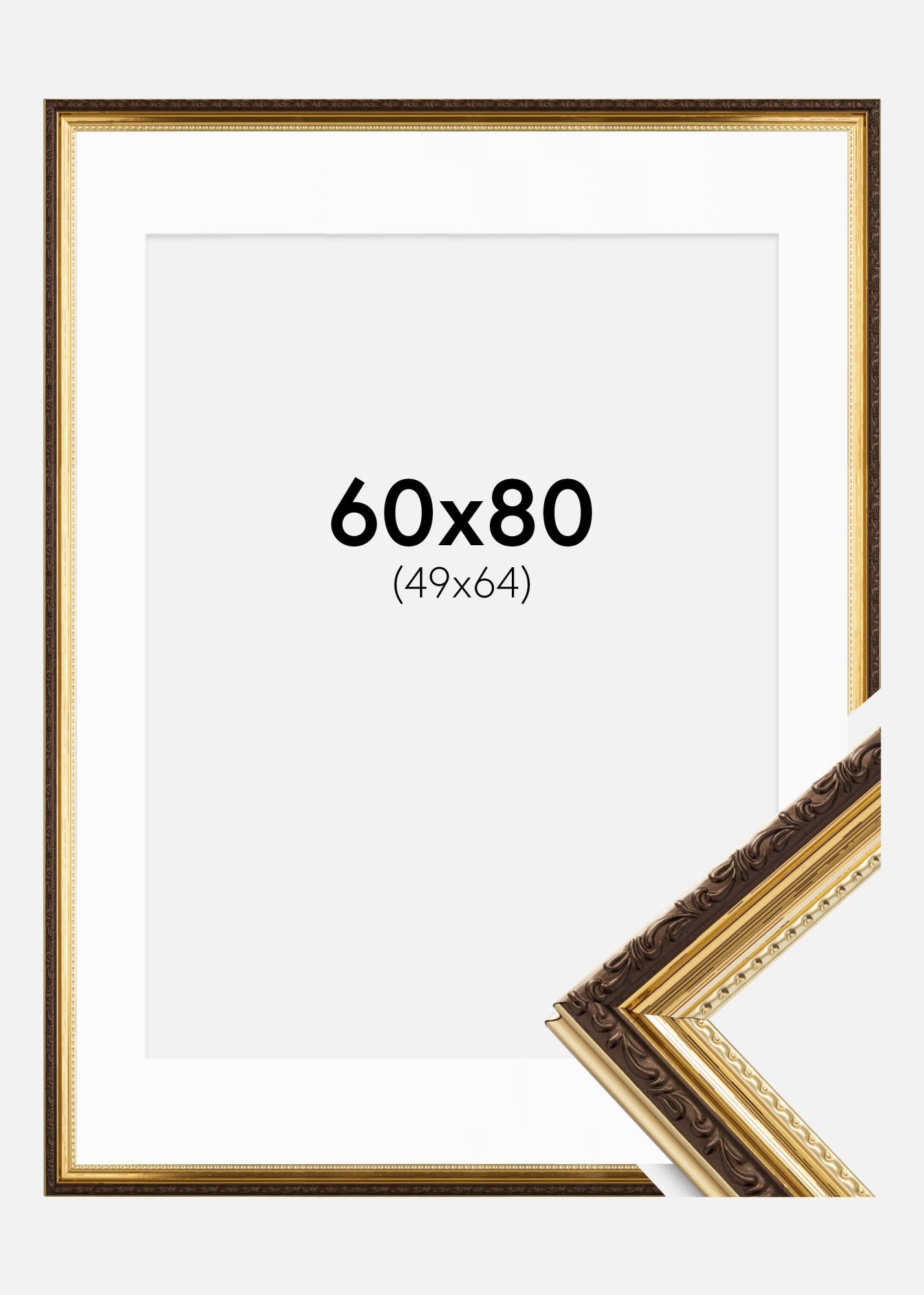 Doživite eleganco in klasično lepoto z našim zlatim okvirjem s paspartujem. Ta izpopolnjen okvir je popoln za izpostavitev vaše slike ali fotografije velikosti 50x65 cm. S širino 25 mm in globino 20 mm prinaša bogat in razkošen občutek vašemu izbranemu motivu.