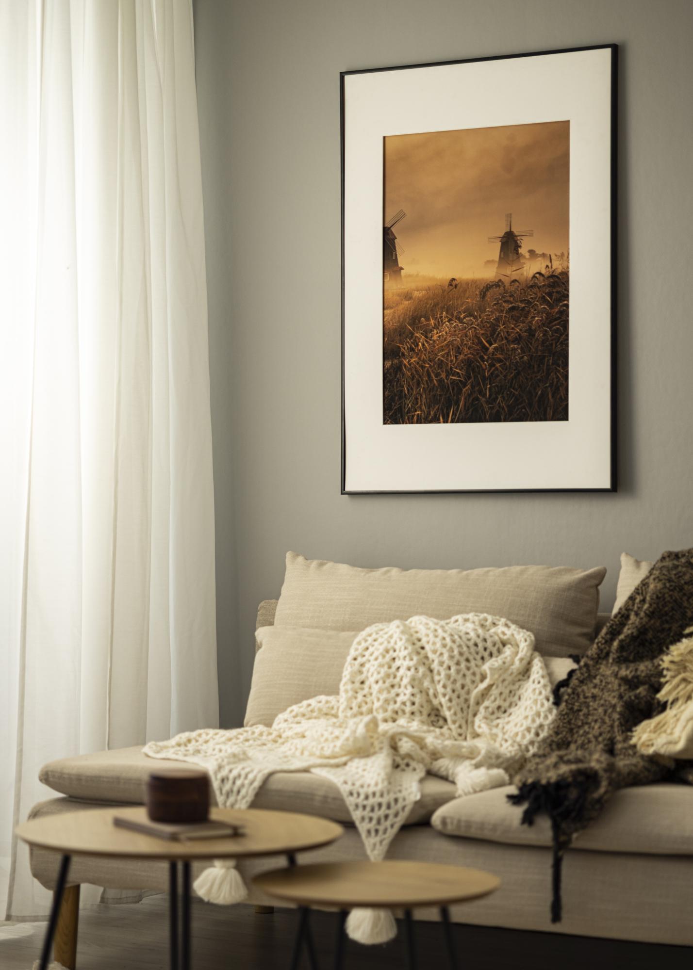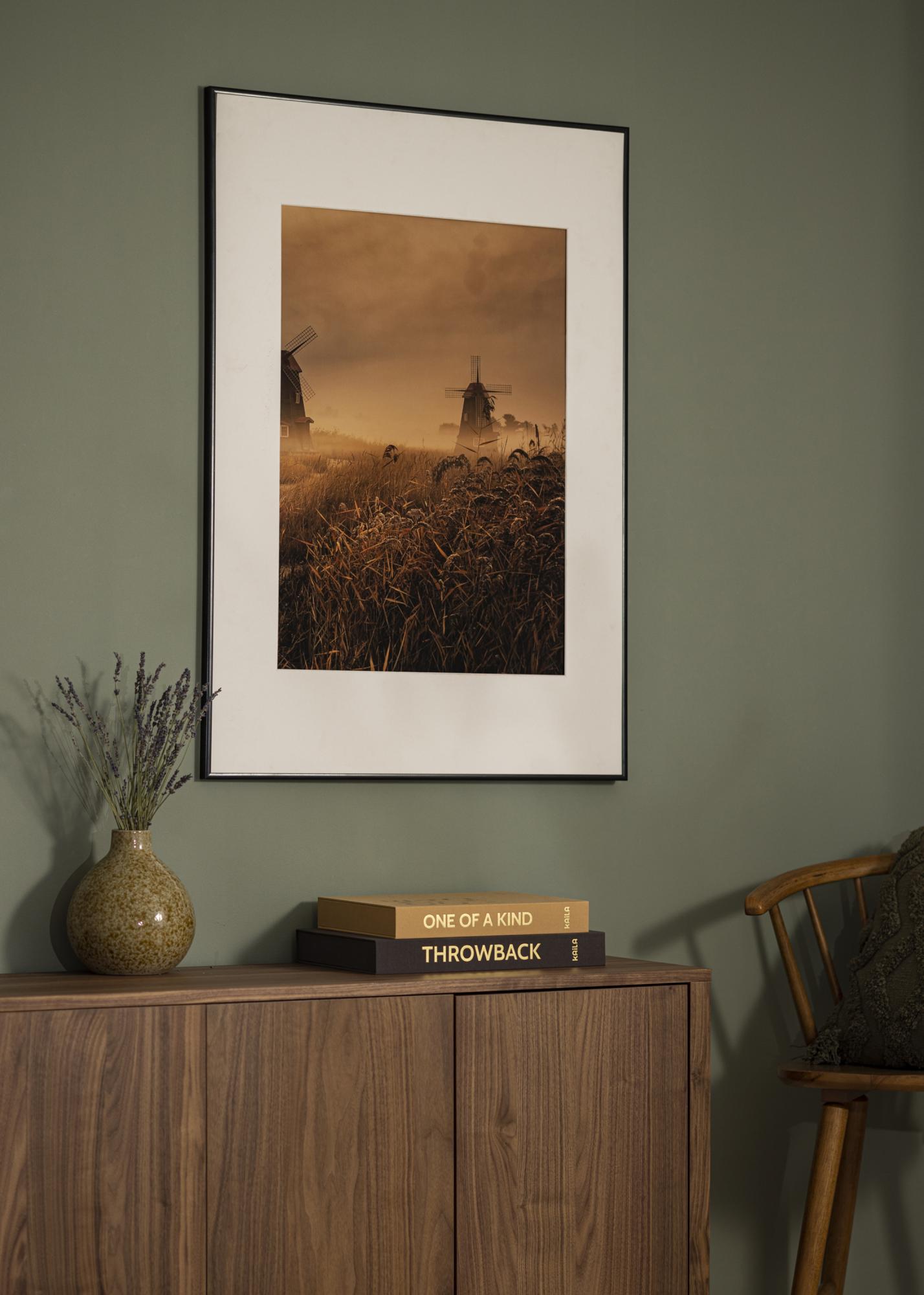Akrilno steklo v okvirju ima zaščitno folijo na obeh straneh, ki jo je pred uporabo enostavno odstraniti, kar zagotavlja, da je vaš motiv predstavljen brez prask ali prahu. S profilom, ki meri le 9 mm, okvir postane diskreten, a vseeno viden detajl na vaši steni.