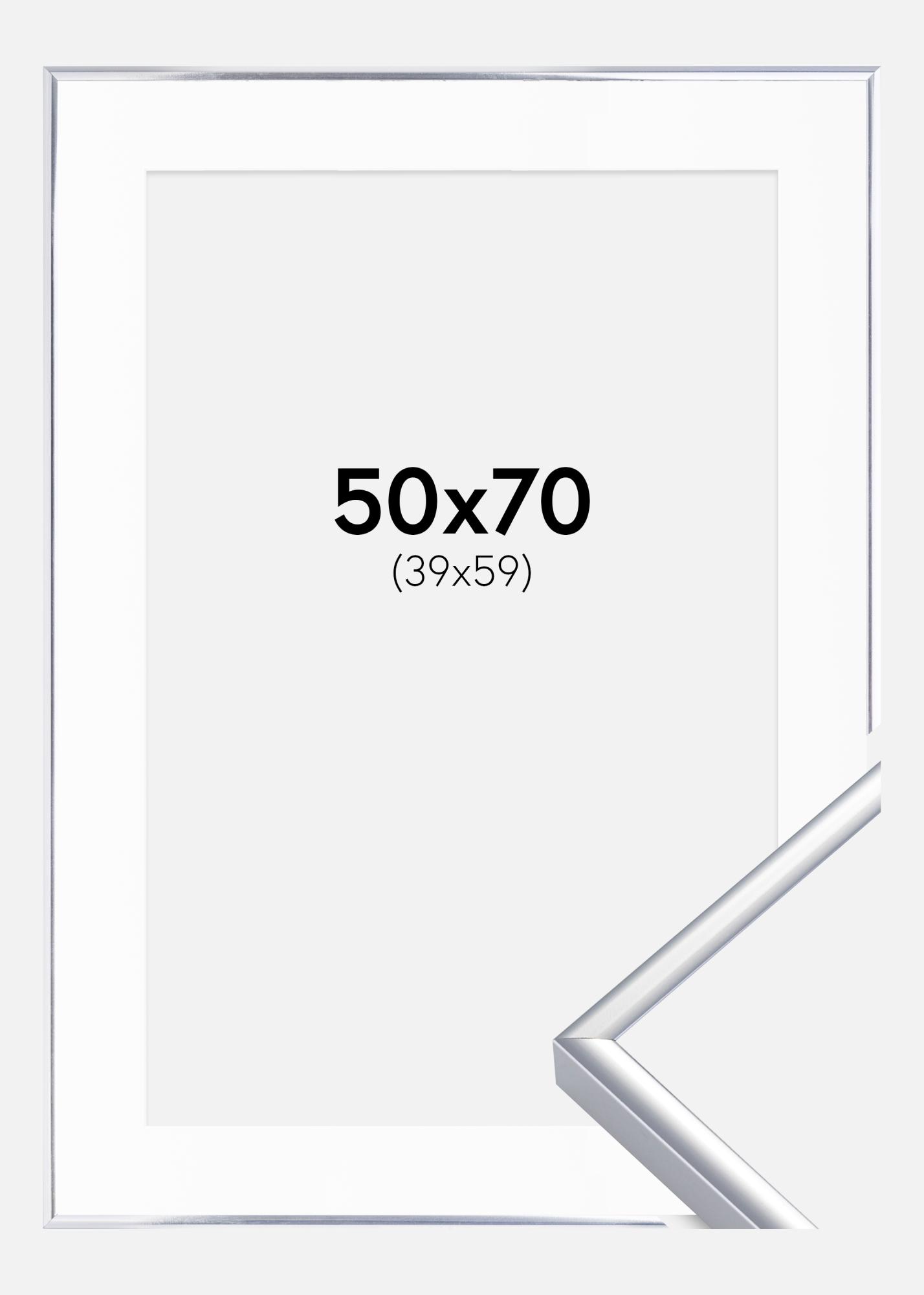 Okvir Aluminij Srebrn sijaj 50x70 cm - Paspartŭ Bela 40x60 cm