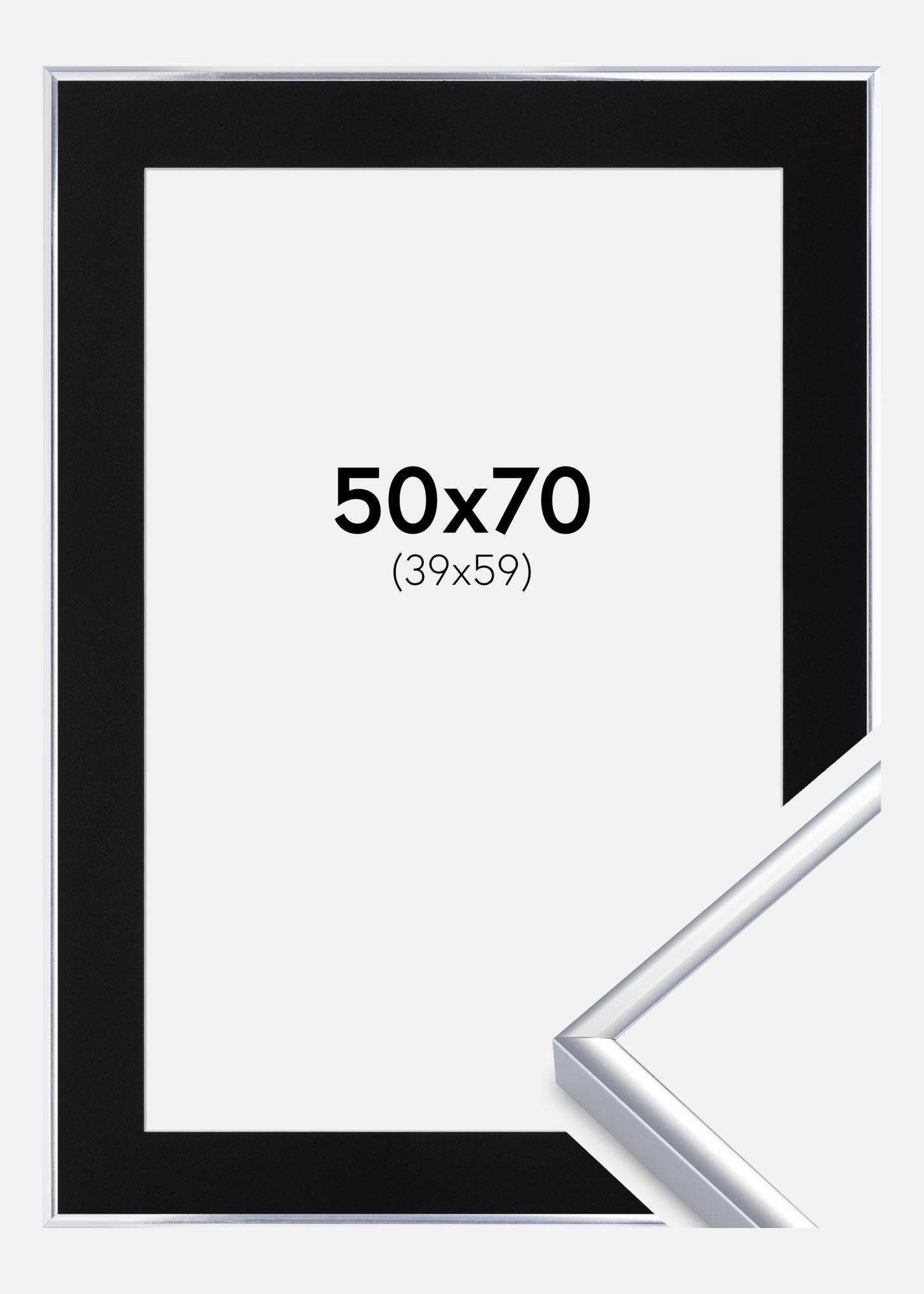 Okvir Aluminij Srebrn sijaj 50x70 cm - Paspartŭ Črna 40x60 cm