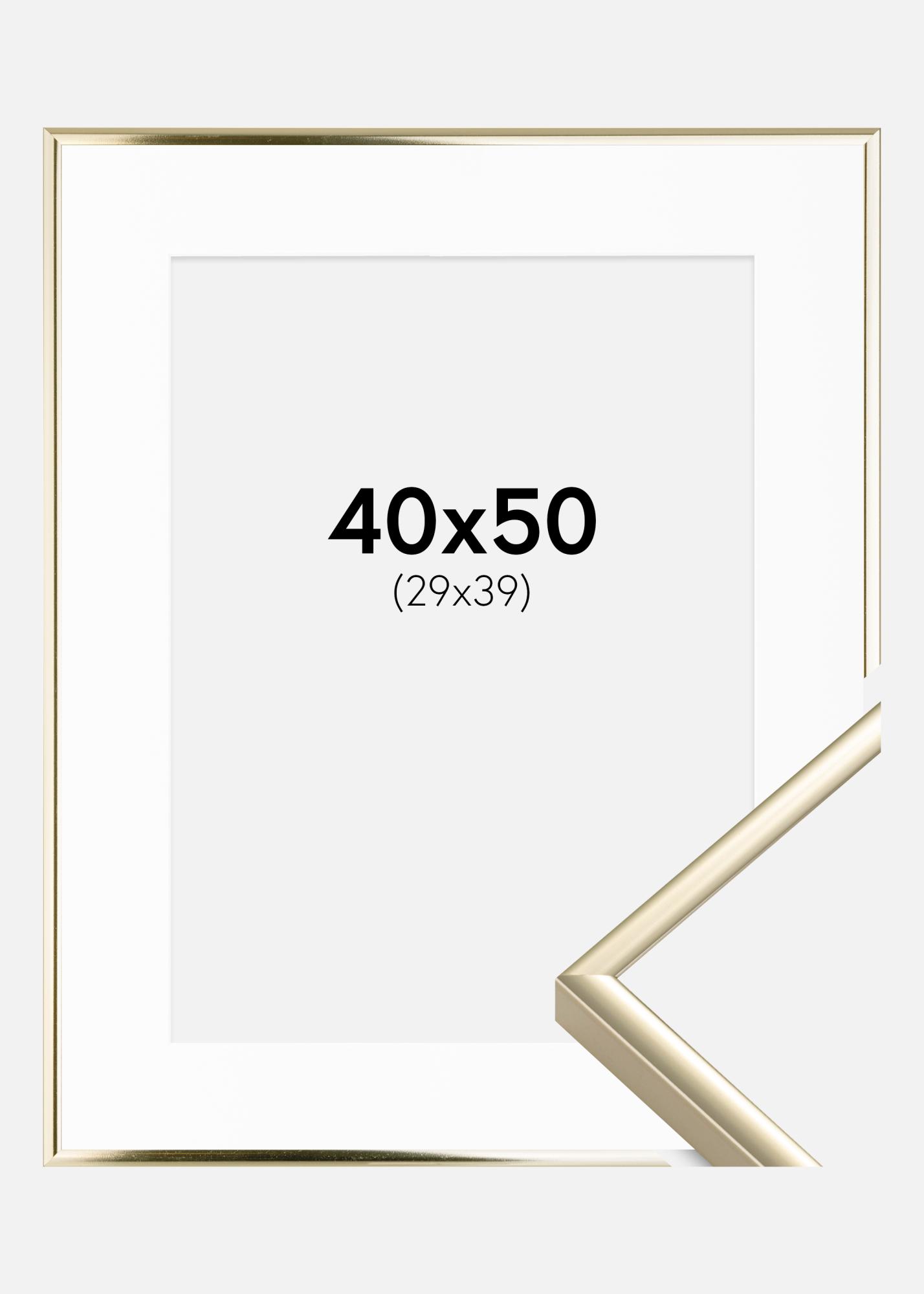 Izboljšajte svojo umetnost in ji zagotovite pozornost, ki si jo zasluži, z elegantnim zlatim okvirjem, dopolnjenim z belo pasparto. Ta sofisticiran okvir je popoln za poudarjanje vaše slike velikosti 30x40 cm, kjer pasparta ne le, da dodaja vizualni prostor, ampak tudi ščiti umetniško delo s preprečevanjem neposrednega stika s steklom.
