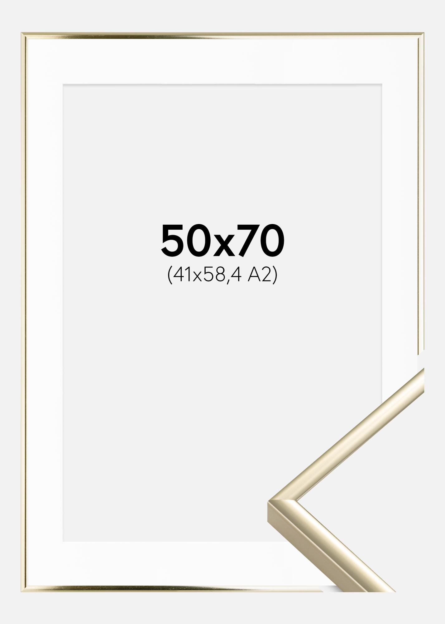 Doživite eleganco in prefinjen občutek z našim ekskluzivnim zlatim okvirjem, ki je popoln za poudarjanje vaše A2 slike (42x59,4 cm) s stilom. Beli passepartout nudi profesionalno in globoko dimenzijo vašega umetniškega dela, medtem ko sijajni zlati okvir, z majhno širino le 9 mm, dodaja subtilno razkošje, ne da bi prevladal.