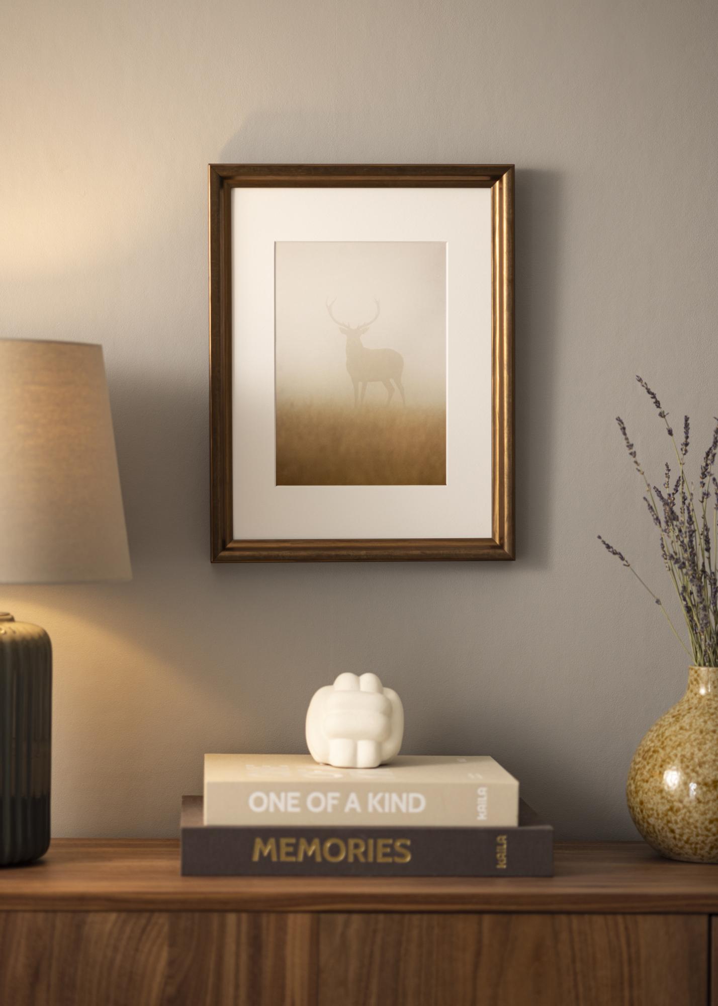 Elegantno okvir v lastnih merah v privlačni bakreni barvi, ki daje trden in ekskluziven vtis. Arjeplog Brons ni okvir, ki bi ustrezal vsem vrstam motivov, vendar je pri določenih vrstah slik to odlična izbira.