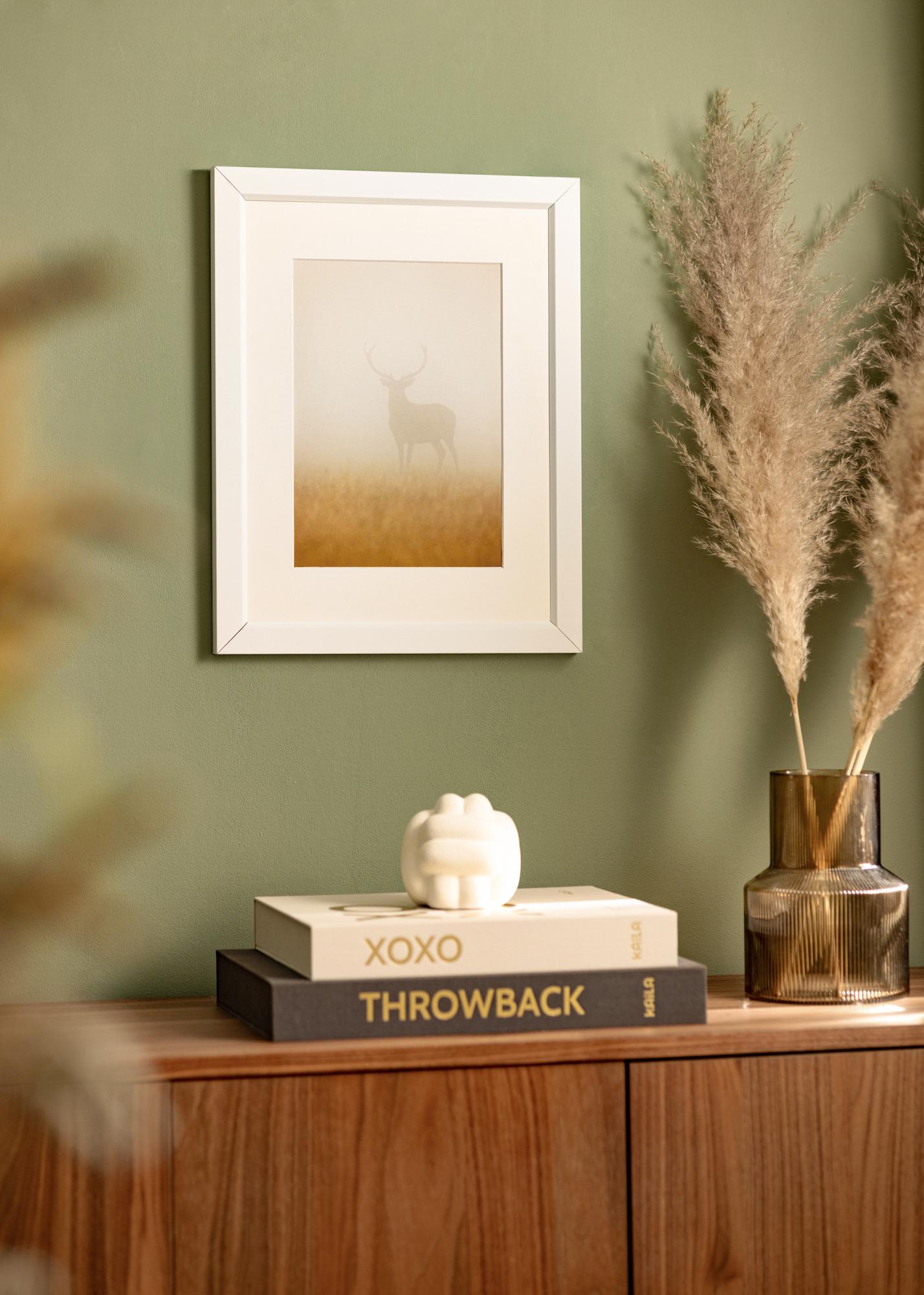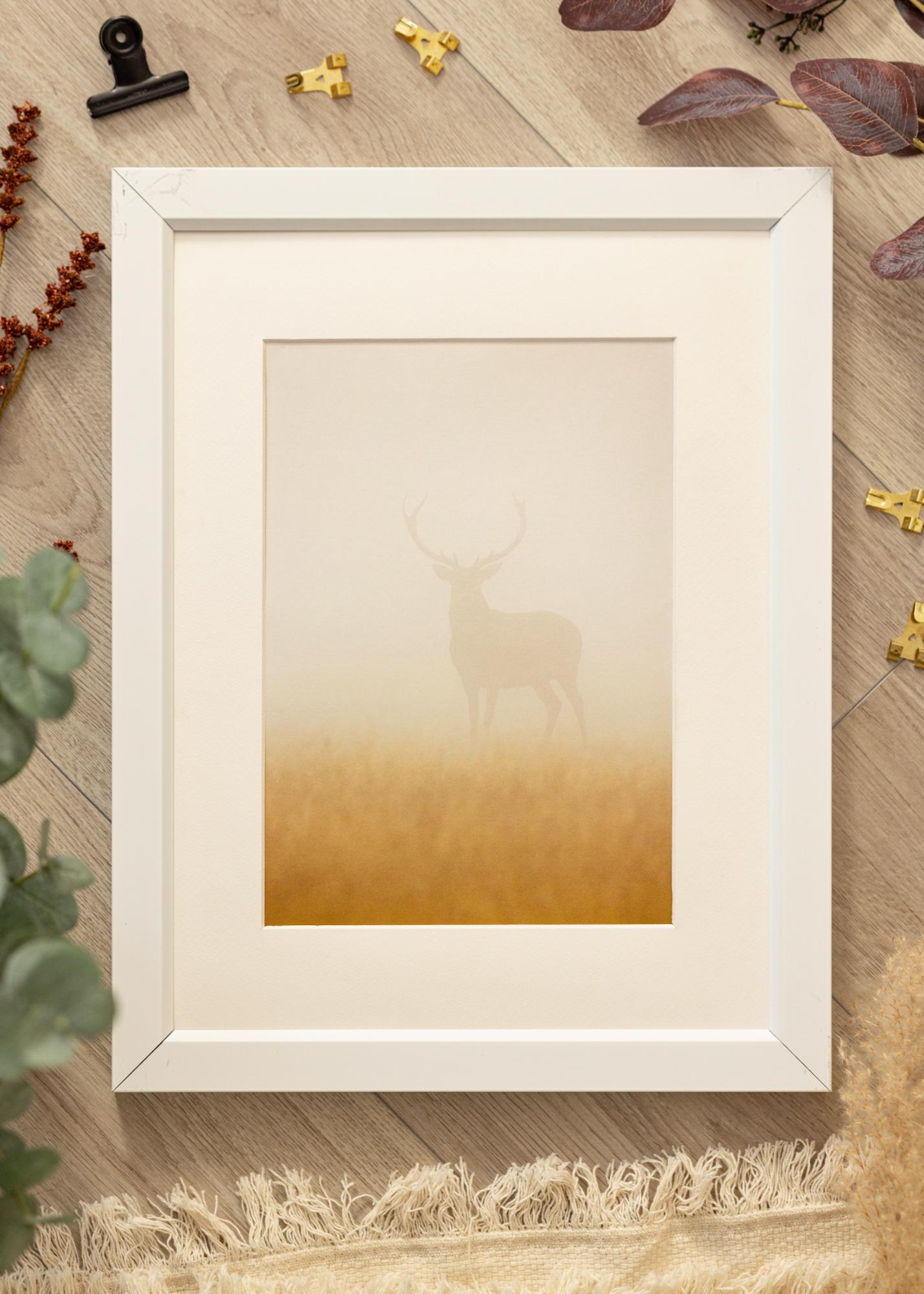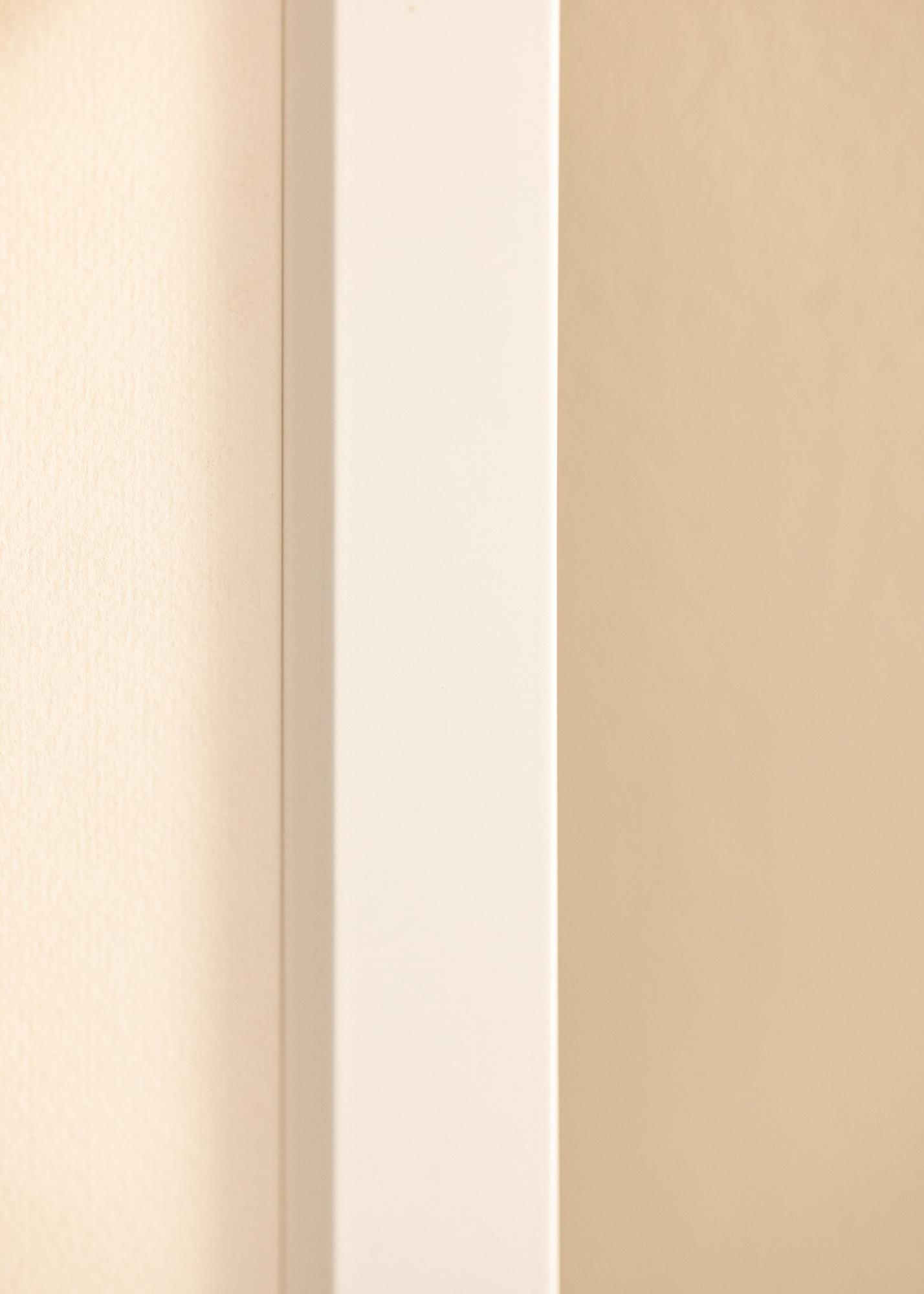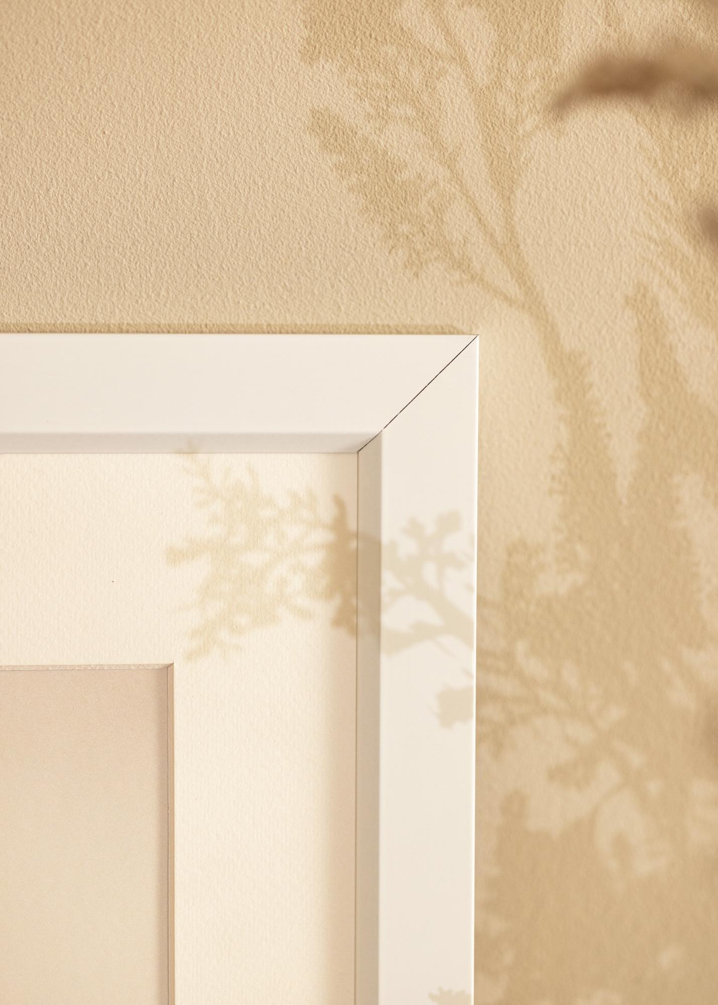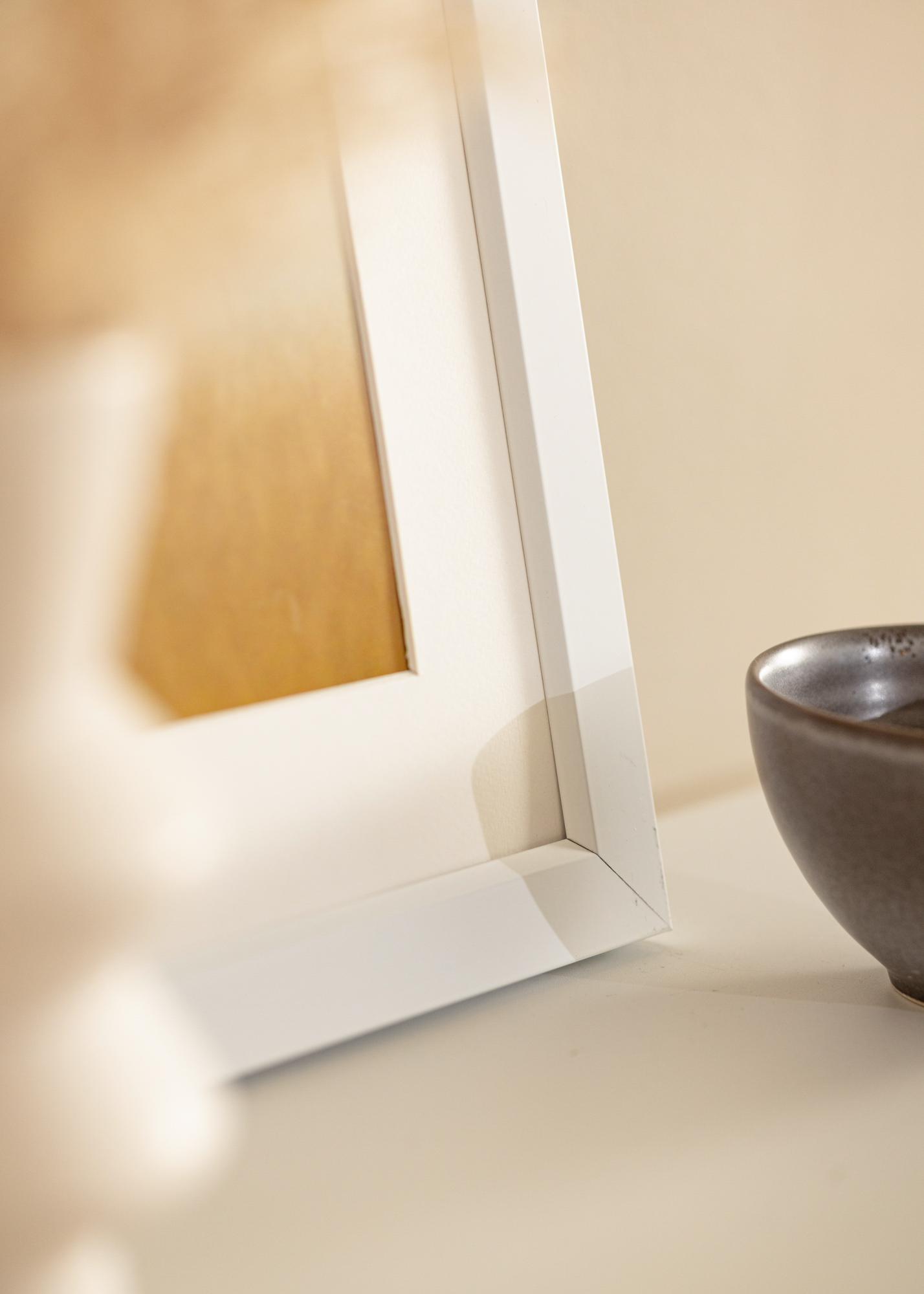 Elegantna bela aluminijasta okvir z poševnim notranjim robom, ki daje tabli eleganten videz in se lepo poda v vse vrste interierjev. Bel okvir se prilega vsem vrstam slik, saj omogoča, da je fokus popolnoma na motivu, ki je tako poudarjen. Najbolj učinkovit je v nasprotju z barvitimi ali grafičnimi motivi, ki ustvarjajo kontrast z belo. Kombinirajte različne vrste belih okvirjev z motivi na isto temo v galerijsko steno, ki bo v središču pozornosti v dnevni sobi.