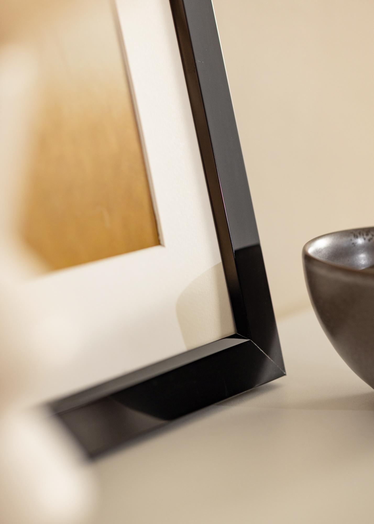 Črni eleganten okvir za slike z visokim sijajem, izdelan iz aluminija, s poudarjeno notranjo poševno linijo. Okvir je primeren za vse, od fotografskih portretov do krajinskih slik v akvarelu, in z belo paspartu še dodatno poudarja motiv. Bleščeč lak omogoča, da se slikovni okvir še posebej dobro ujema z modernimi industrijskimi notranjostmi in drugimi minimalističnimi slogi. Združite z drugimi črnimi slikovnimi okvirji, da prostoru pridate občutek celovitosti.