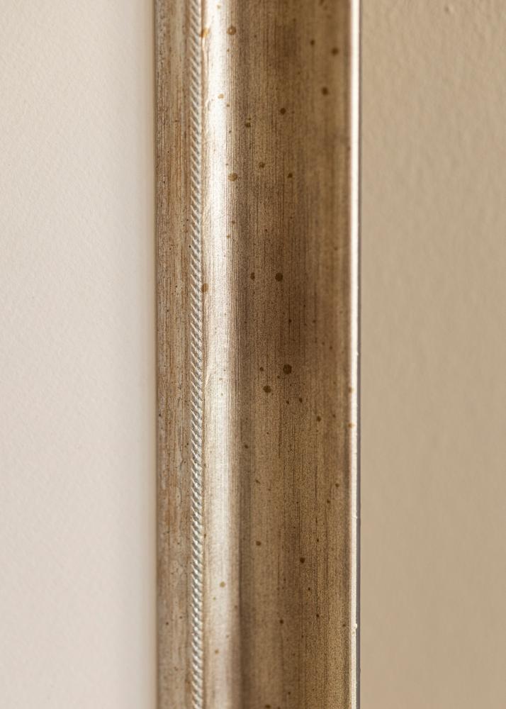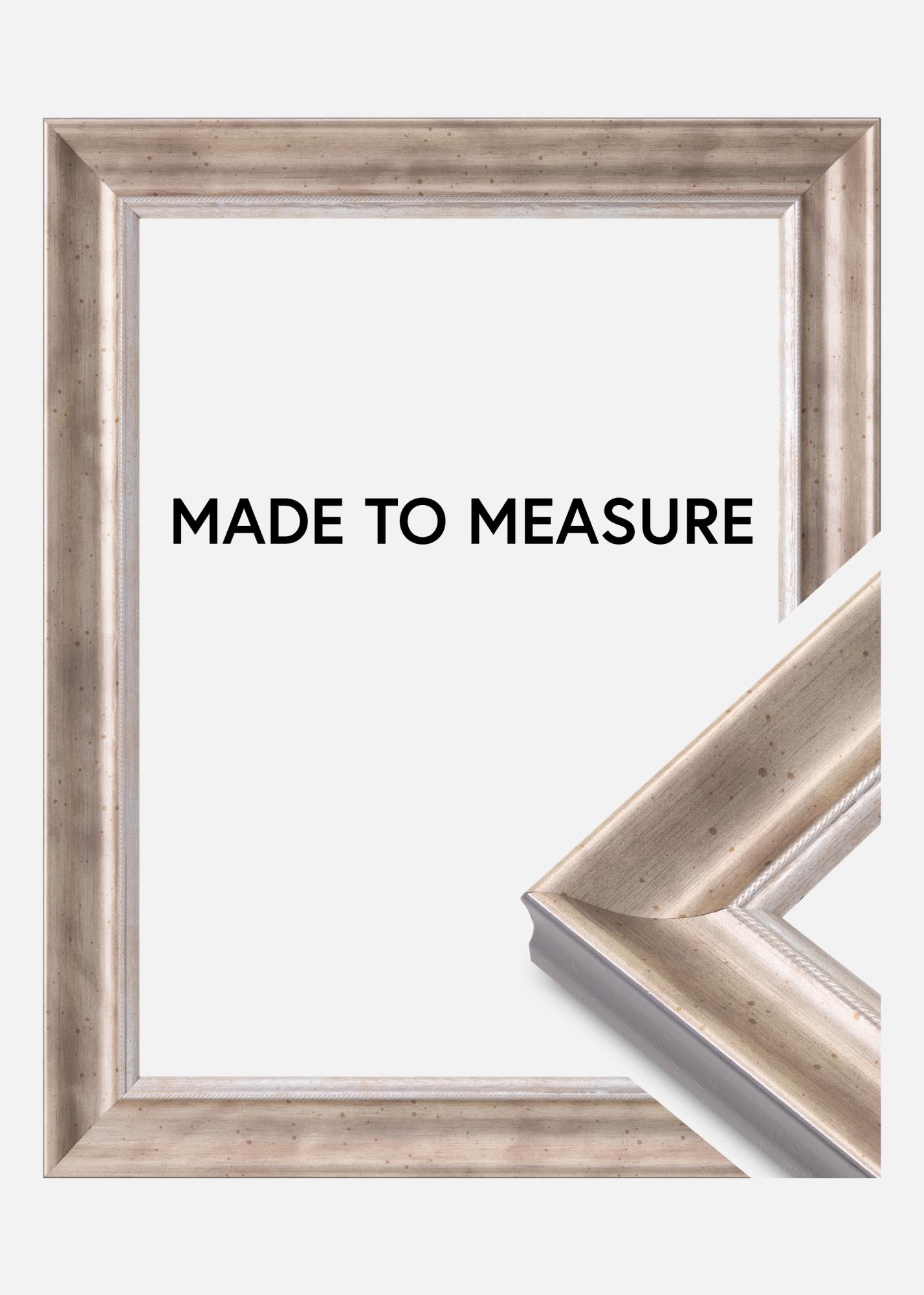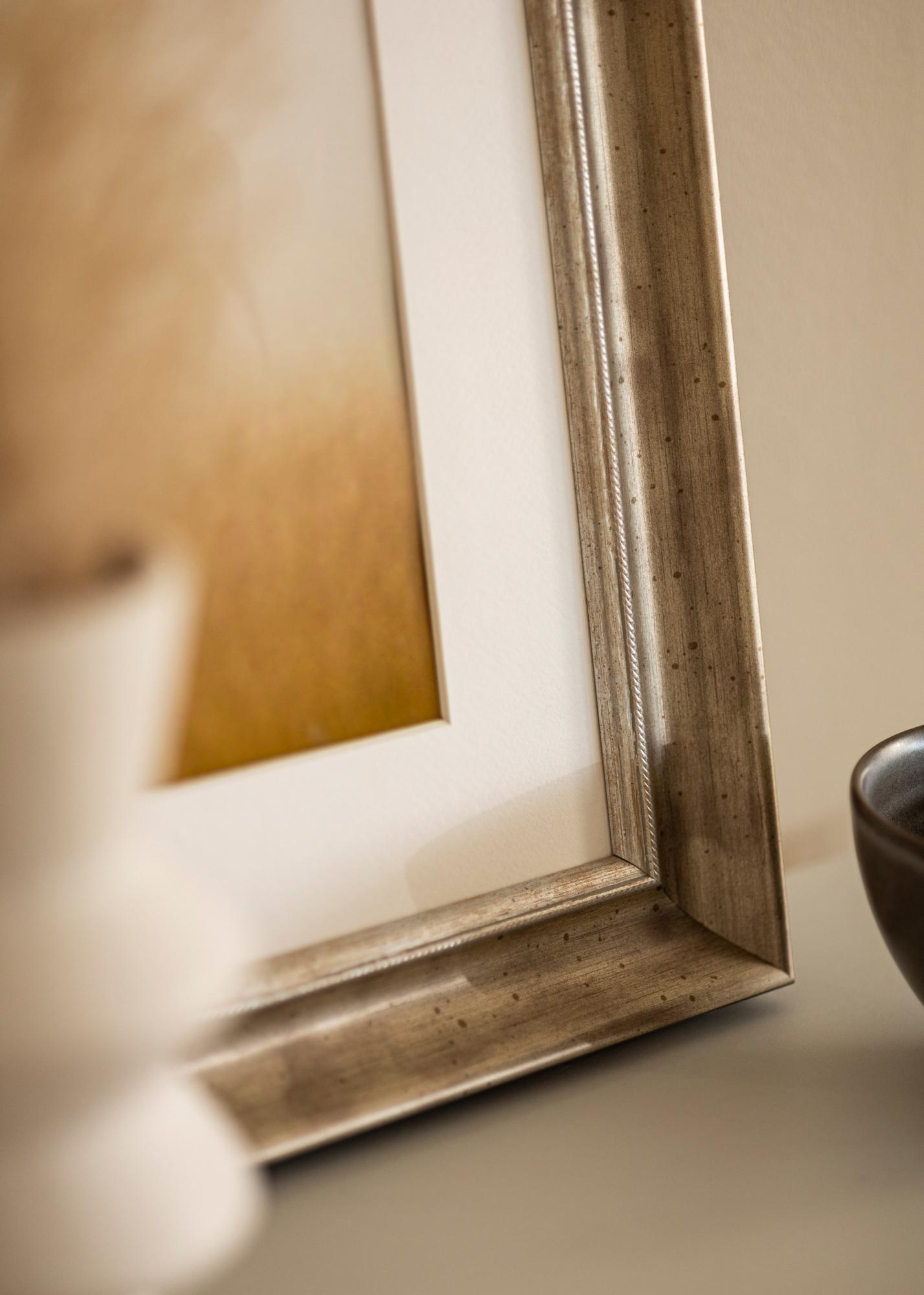 Razkošen okvir za slike po meri z belo srebrno profil. Širok srebrn okvir se prilega skoraj vsem vrstam motivov in okolij.