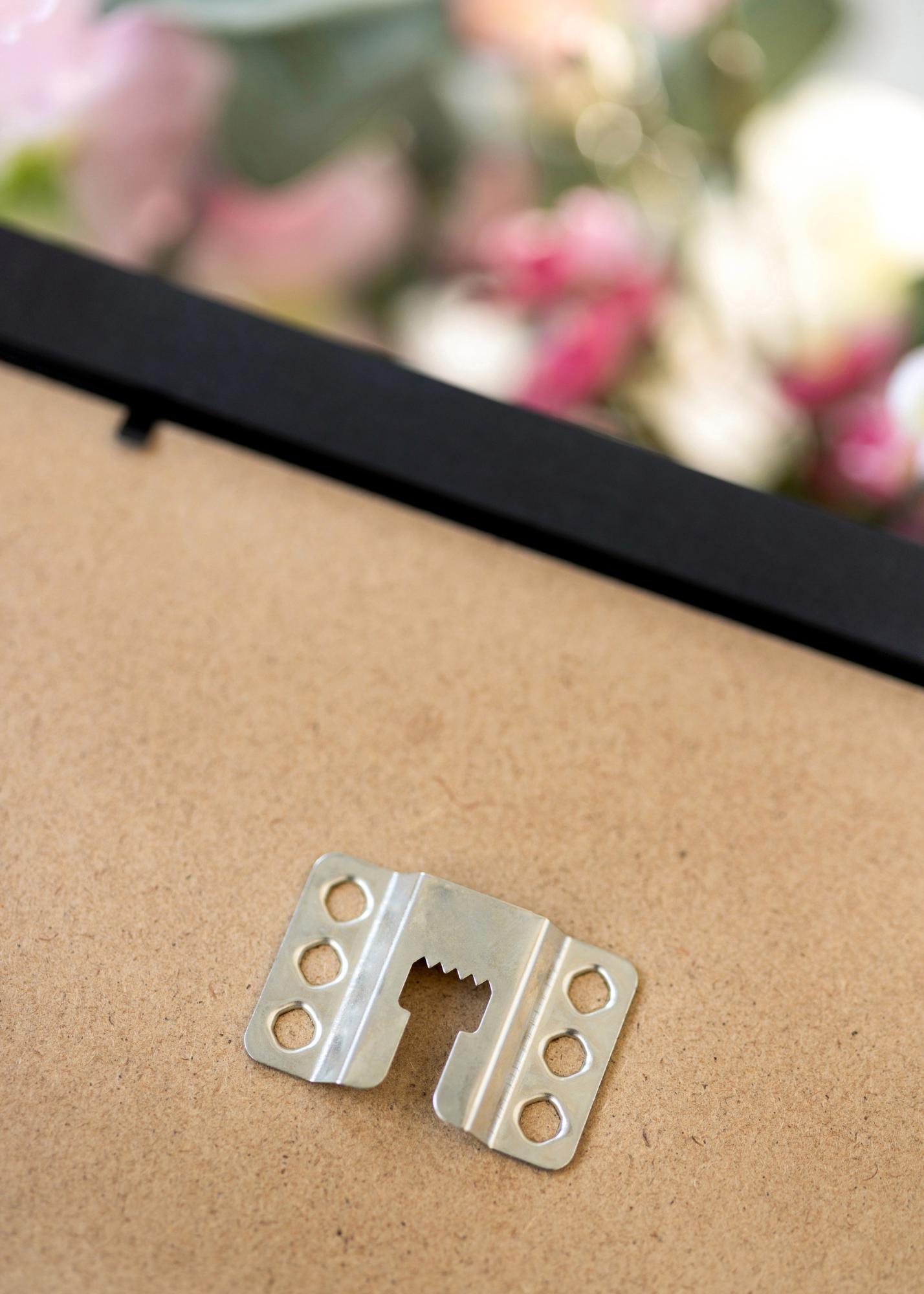 Obesite okvir enostavno zahvaljujoč vnaprej nameščenim kovinskim obešalnikom na zadnji strani. Montaža vaših slik se izvede gladko z upogljivimi zatiči, ki vse držijo na mestu. Ta cenovno dostopen foto okvir v velikosti 60 x 60 cm je na voljo tudi v več velikostih, da ustreza vašim edinstvenim potrebam. Ustvarite osebni zid s spomini, ki trajajo večno, z našim kakovostnim in stilsko dovršenim okvirjem.