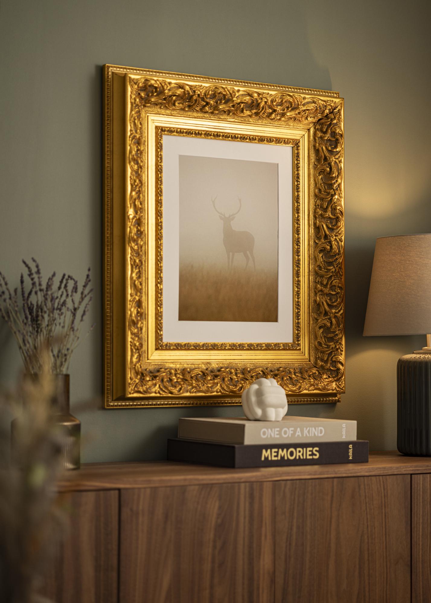 Naš okvir Birmingham Gold je okvir za slike po meri, ki ga izdelujemo v naši lastni okvirjalnici. S svojim globoko zlatim tonom in klasičnim baročnim dizajnom je eleganten dodatek vsakemu prostoru. Ta okvir za fotografije ima 152 mm širok okvir in globino 74 mm, kar mu daje impresivno prisotnost na steni.