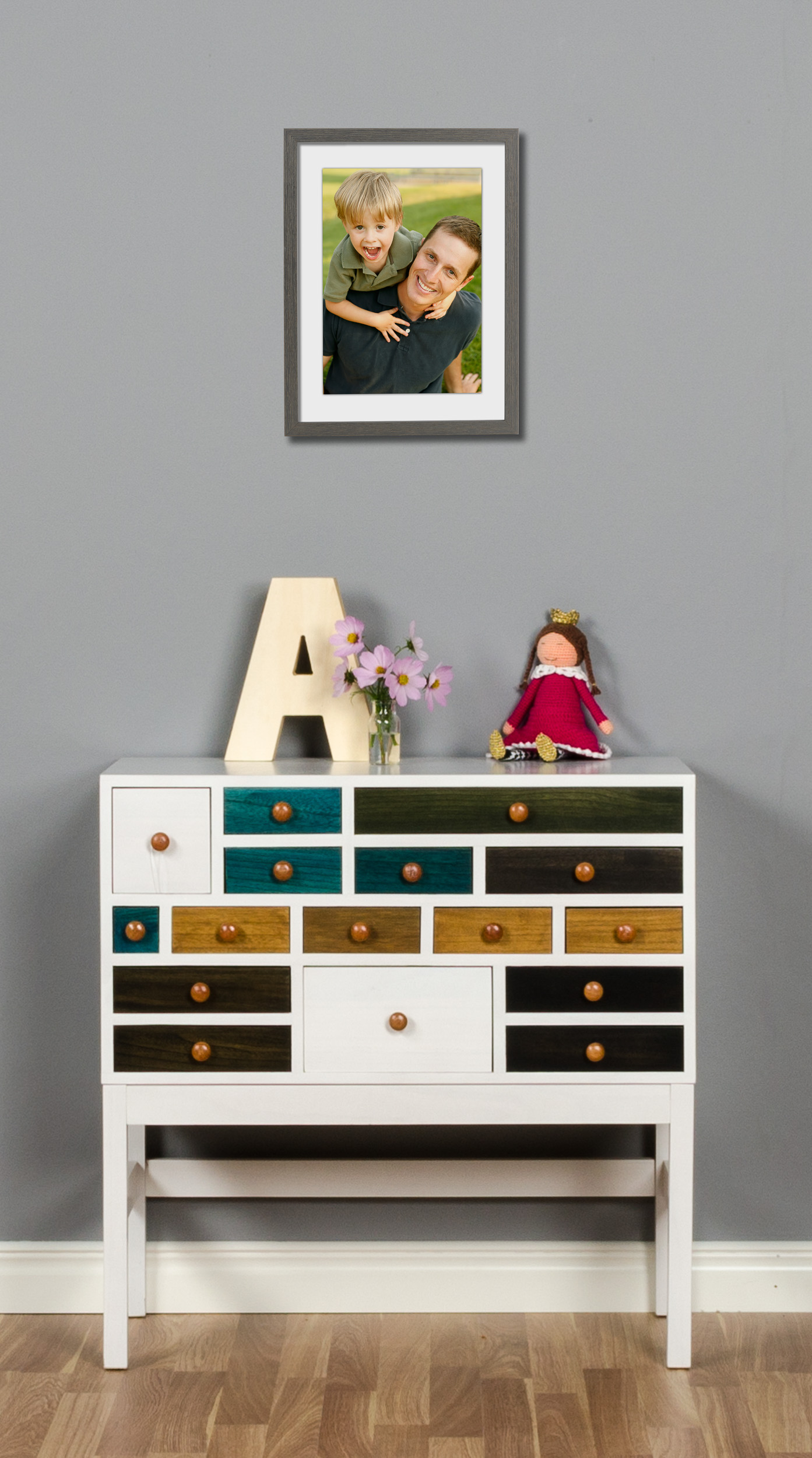 Dodajte značaj svojim fotografijam z uporabo tega okusno teksturiranega okvirja! Barva okvirja je polprozorna, kar omogoča, da lesni vzorec prehaja in naredi vtis bolj zanimiv. Letvica je v elegantnem modelu, ki se lepo zlije z večino notranjih prostorov. Seveda je hrbtna stran brez kislin, zato ste lahko prepričani, da bo vaša fotografija ostala lepa več let. Okvir izdeluje izkušeno osebje z dolgoletnimi izkušnjami v naši lastni delavnici okvirjev.
