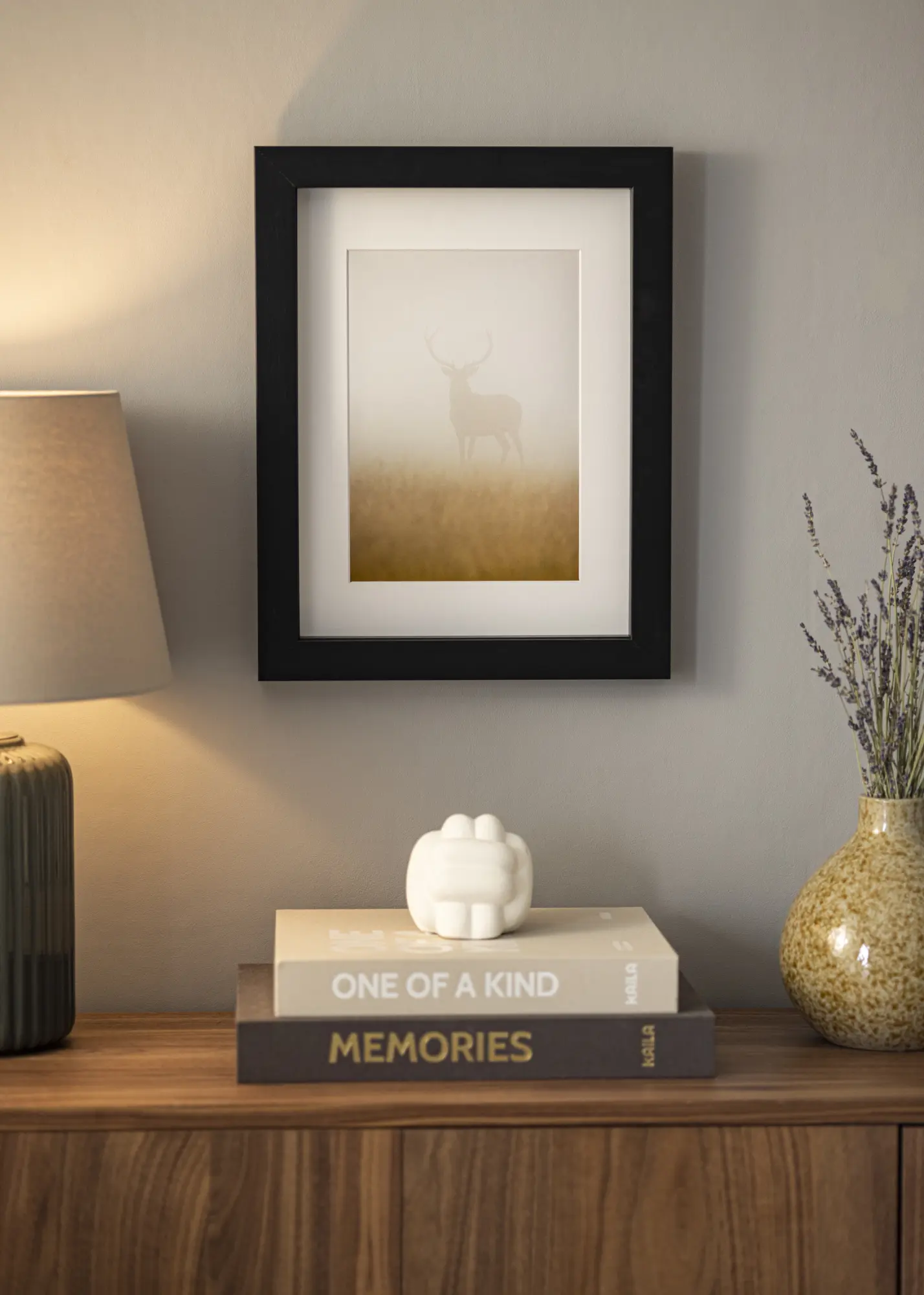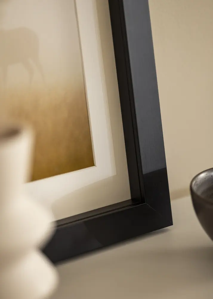 Okvir izdelan na Finskem, ki je prebarvan na črno neposredno na les za bolj pristno občutje lesa. "Boxholm Črn" ima globino 43 mm, kar je popolno, kadar želite uokviriti različne vrste predmetov. Ali pa preprosto želite, da vaš okvir izstopa nekoliko od stene. V okvir je vključen tudi distančni trak, ki vam omogoča izbiro med dvema globinama okvira.