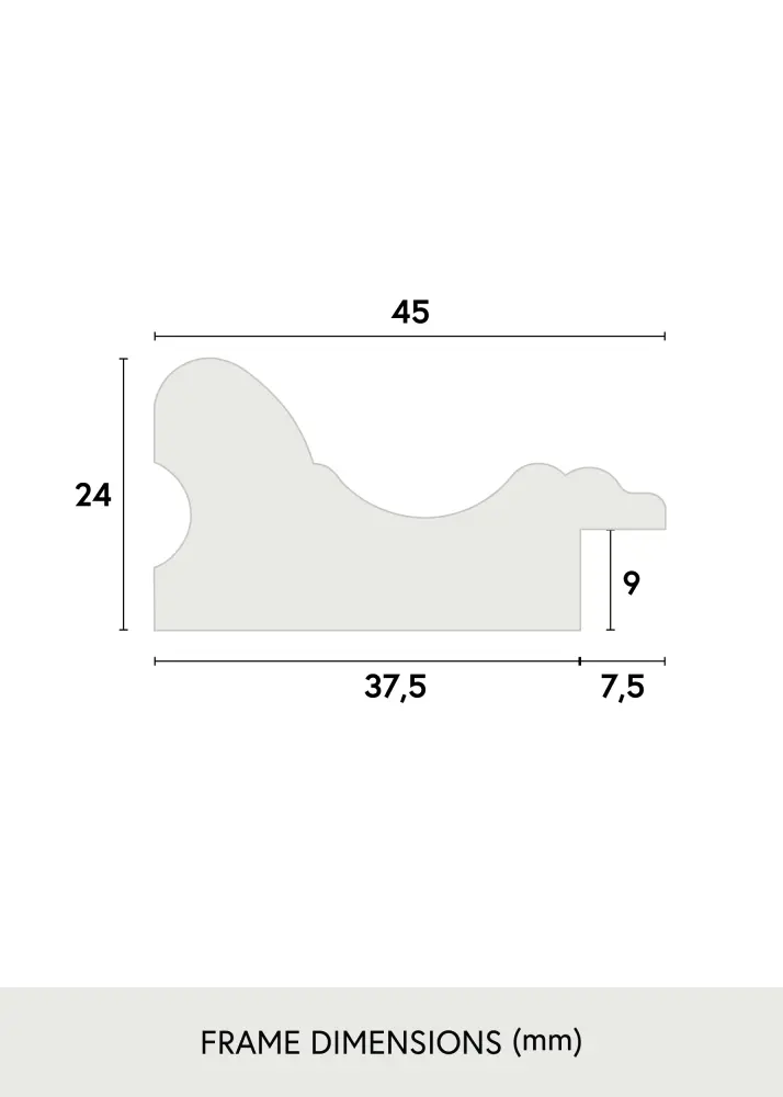 Iščete okvir, ki pritegne pozornost? Charleston je zagotovo nekaj za vas! Ta veličasten, a sodoben okvir ima profil, ki ga sestavljajo več simetričnih nivojev, in se odlično poda k dramatičnemu sliki ali fotografiji s precej črnine. Izbirate lahko med barvami črna, bela, srebrna in zlata.