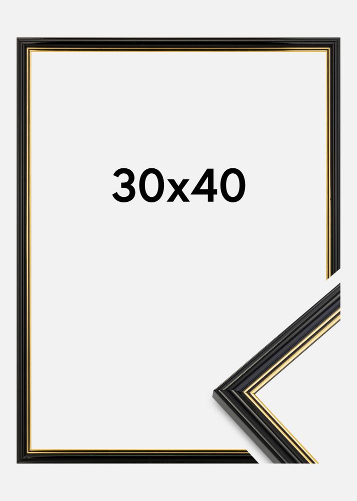 Če iščete klasičen okvir z elegantnim videzom po ugodni ceni, je "Klasik Črna" to, kar iščete. S svojim črnim zaobljenim profilom, okrašenim z dvema tankima zlato obarvanima črtama, je to