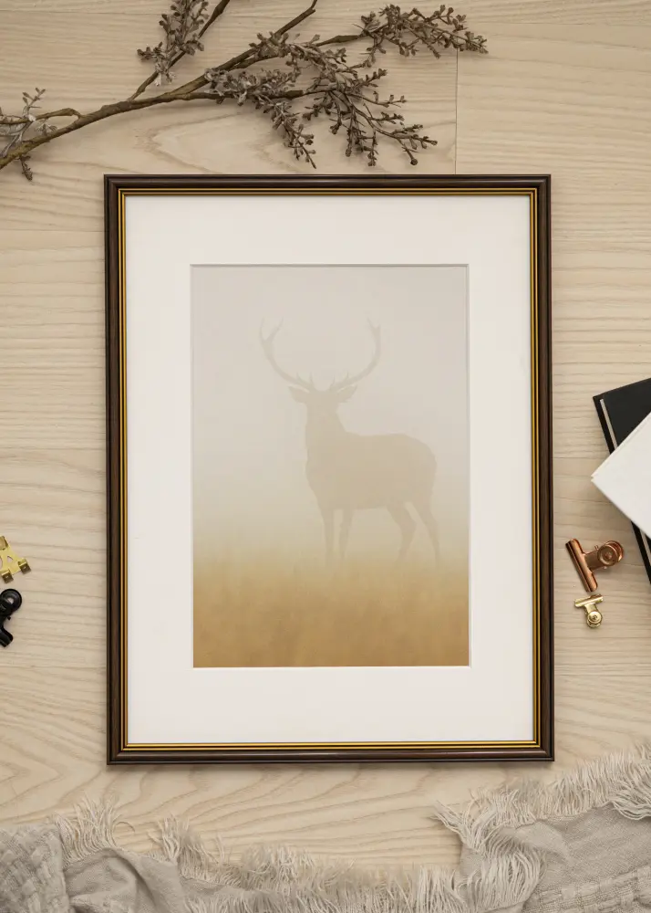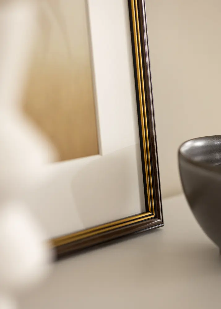Če iščete klasičen okvir v temni barvi lesa, je "Klasični Oreh" odlična izbira. Okvir je v temni barvi oreha in ima dve tanki zlati črti blizu motiva.