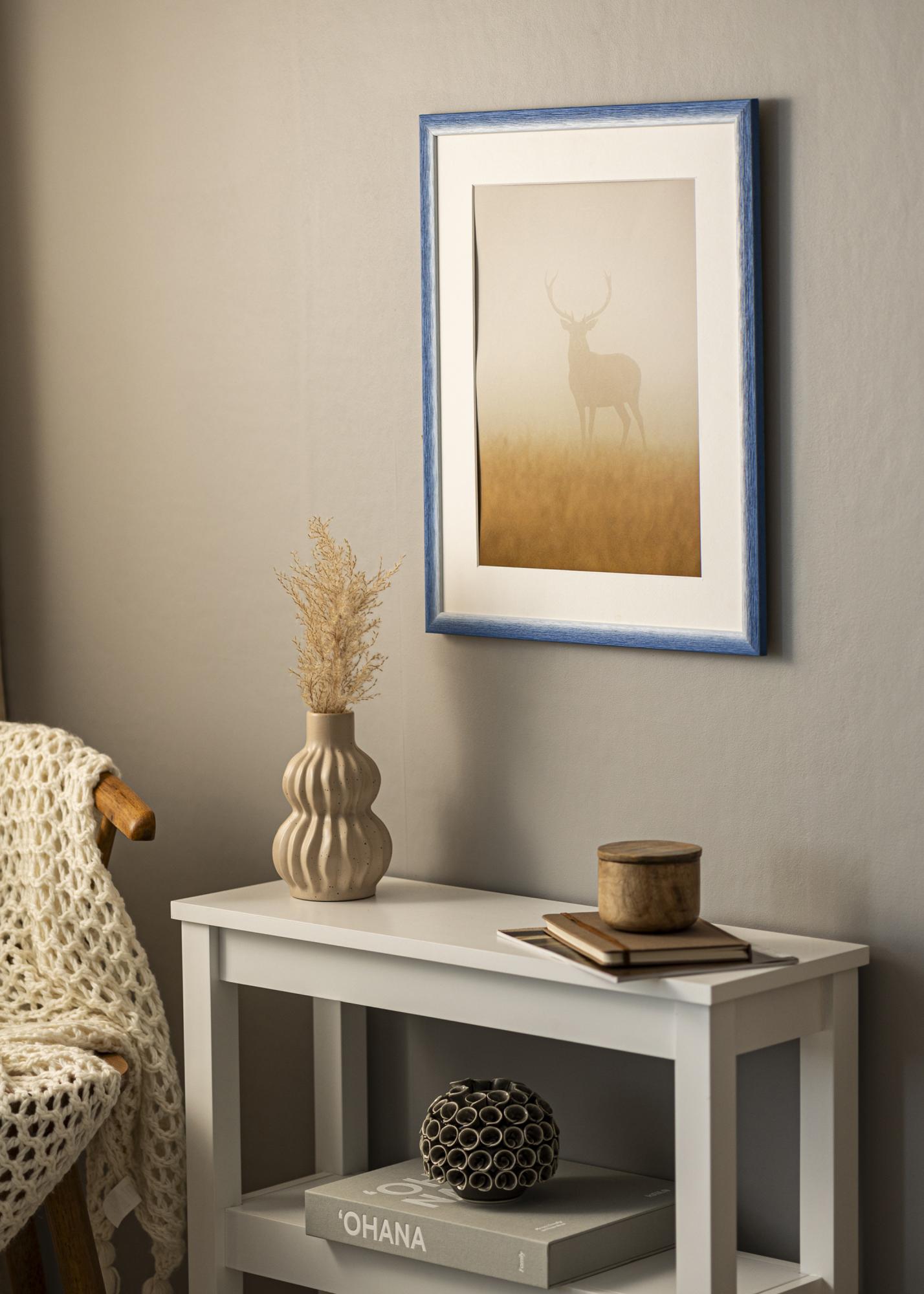 Odkrijte našo po meri izdelano okvirno sliko Cornwall Modra, popolno kombinacijo modernega dizajna in rustikalnega čara. Z 23 mm širokim okvirnim trakom in globino 13 mm je ta foto okvir izdelan iz trajnostnega lesa Ayos. Modra barva se spreminja od svetlega, skoraj belega tona do globlje modre, kar ustvarja živahno barvno lestvico, ki ujame oko.
