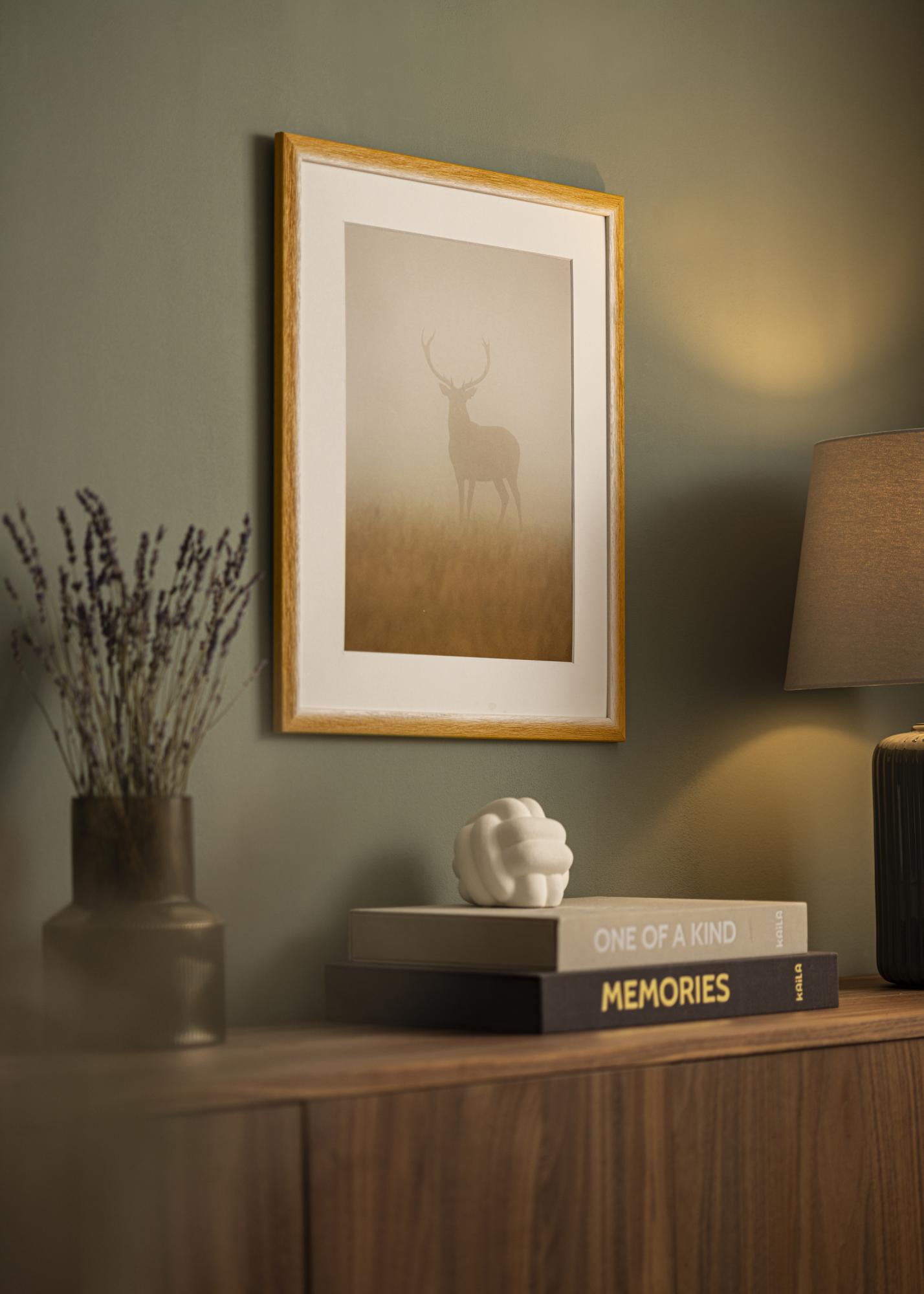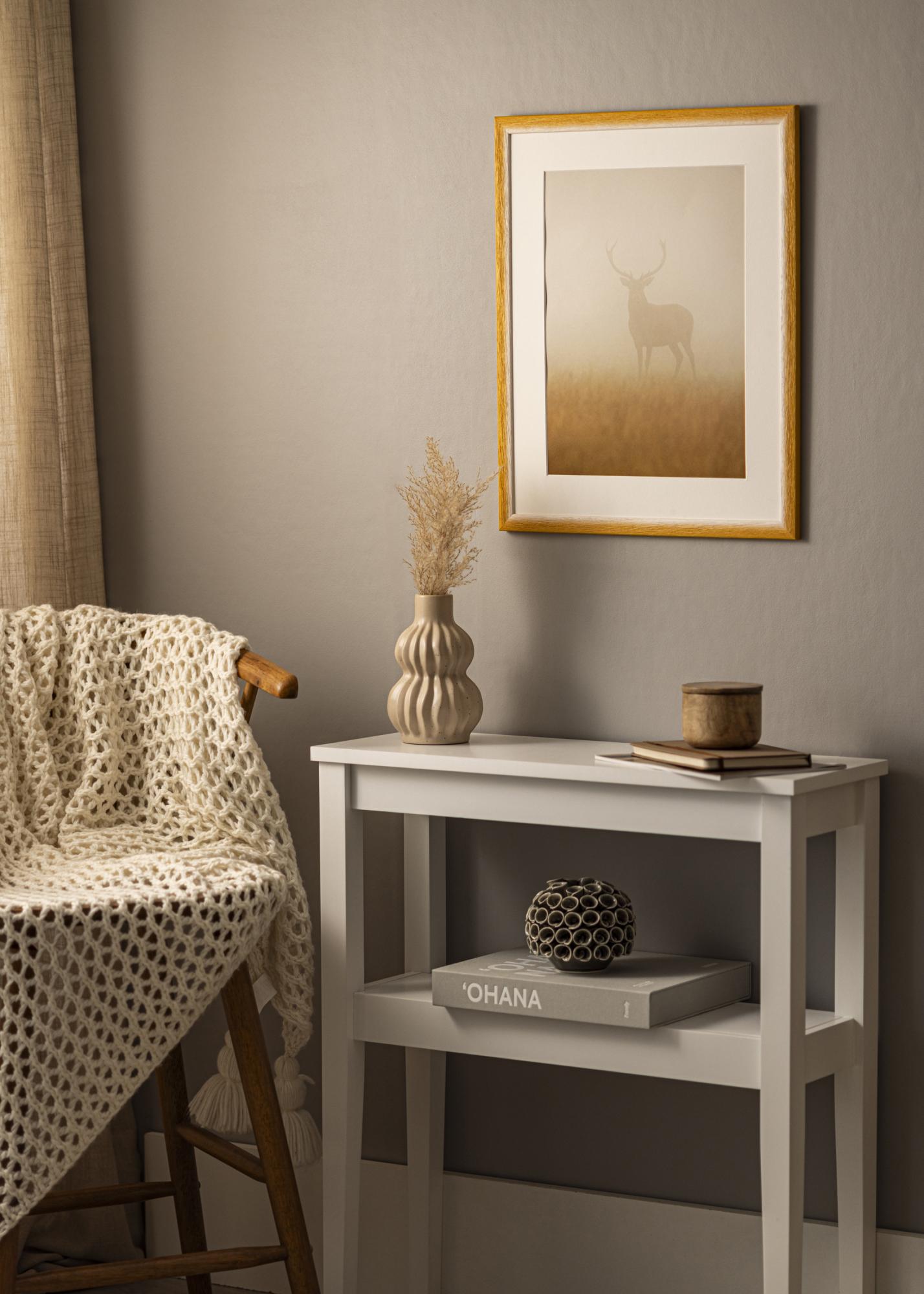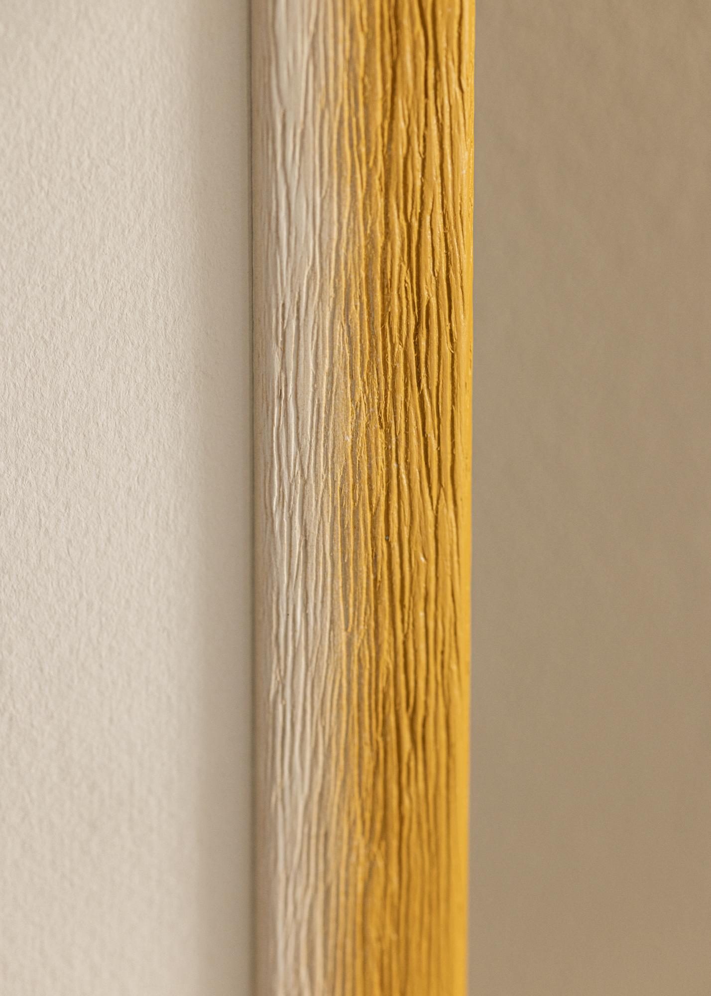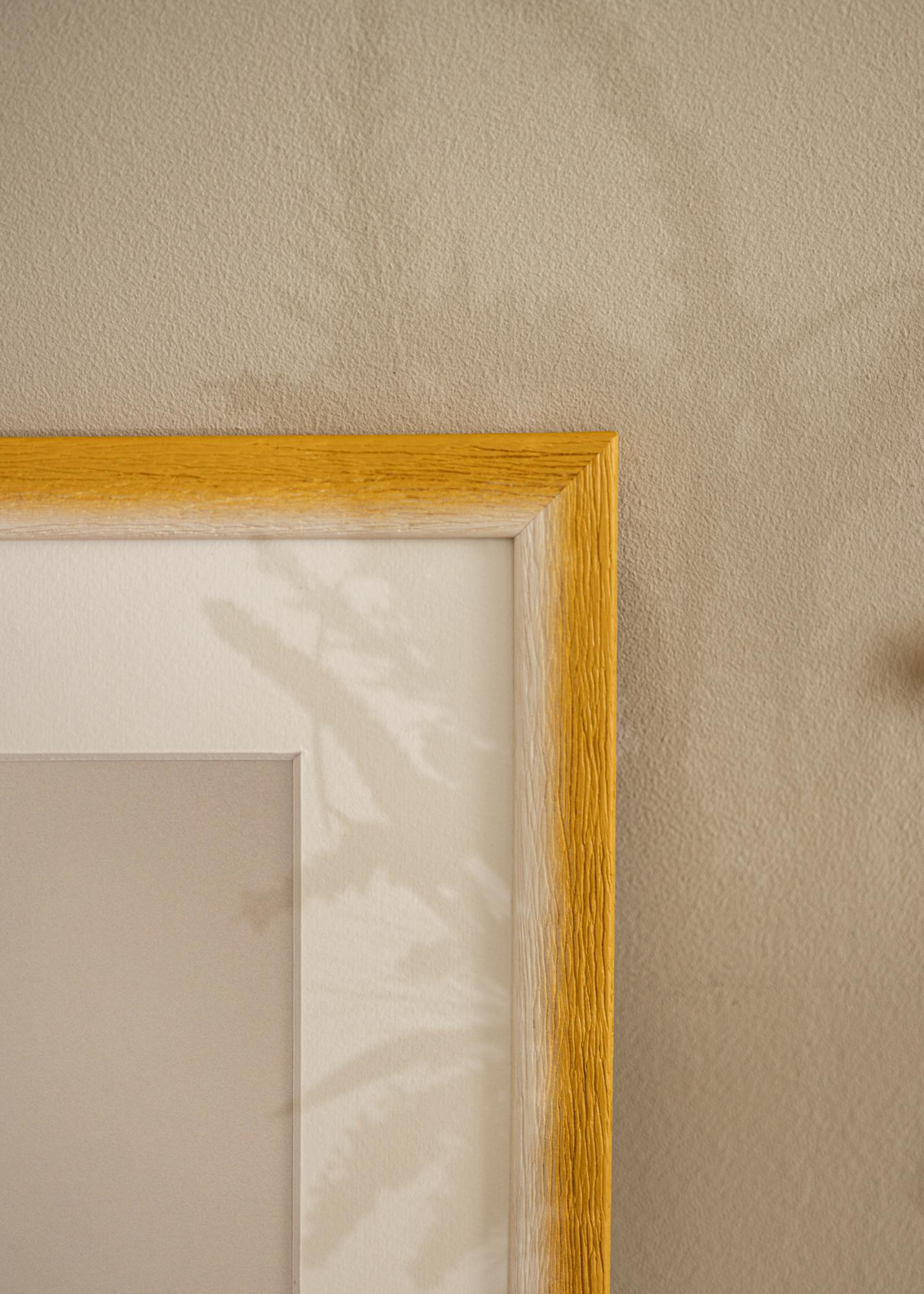 Ta okvir za slike ima harmoničen barvni prehod od svetle, naravno bele tone do tople oker rumene odtenke. Površina je vtisnjena z izrazito leseno strukturo z globokimi vlakni, kar daje otipljiv in naraven občutek. Subtilen prehod med barvami ustvari mehak, pobarvan izraz z živahno globino, ki poudarja vsako sliko.