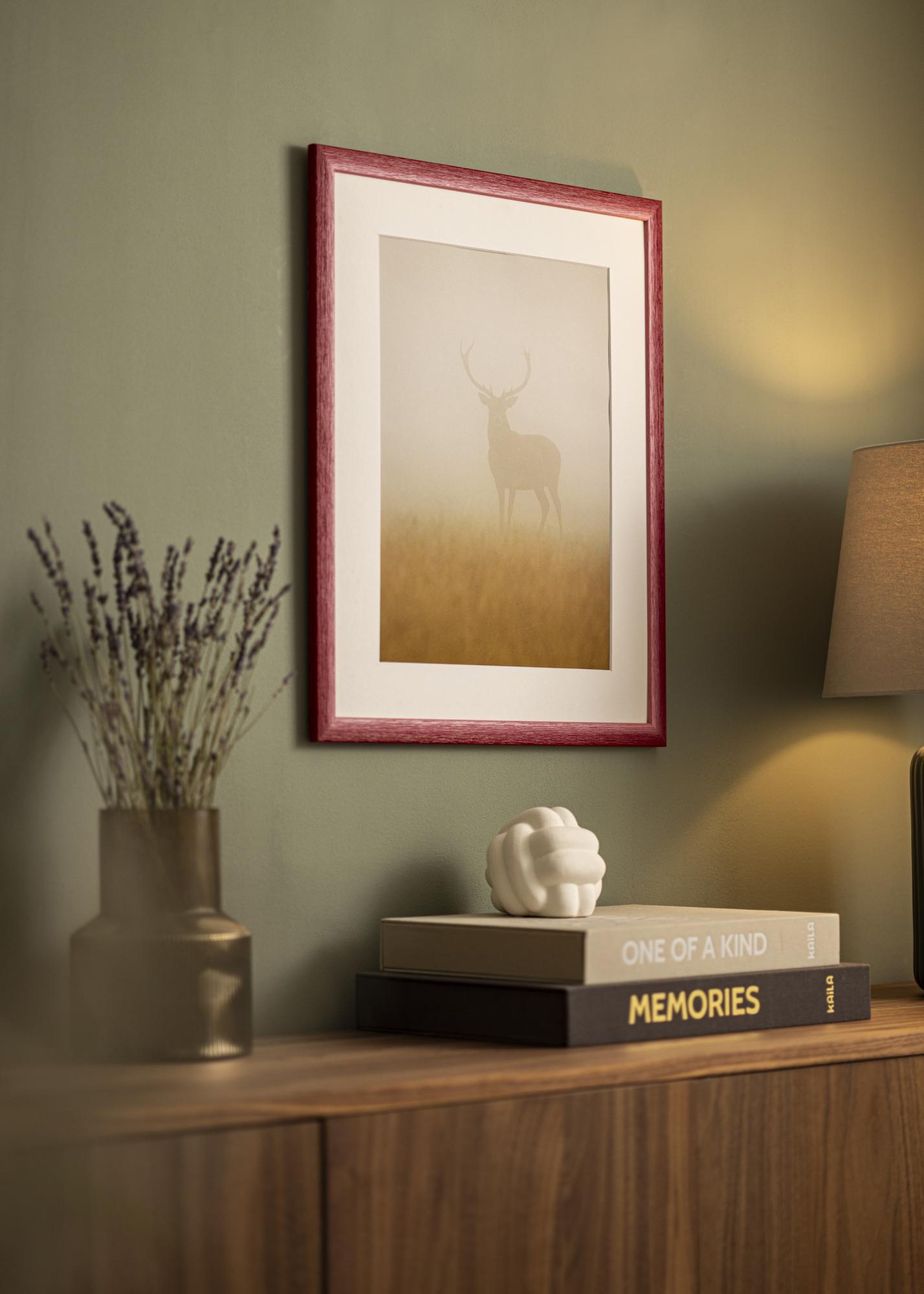 Ker je vsak okvir izdelan v naši lastni delavnici za okvirjanje, ste lahko prepričani, da boste prejeli visoko kakovosten izdelek, prilagojen vašim specifičnim meram. Upoštevajte, da zaradi prilagojene izdelave izdelka ni mogoče preklicati nakupa po naročilu. Izberite Cornwall Temno Rdeča za osebno in elegantno okvirjanje, ki resnično naredi razliko.