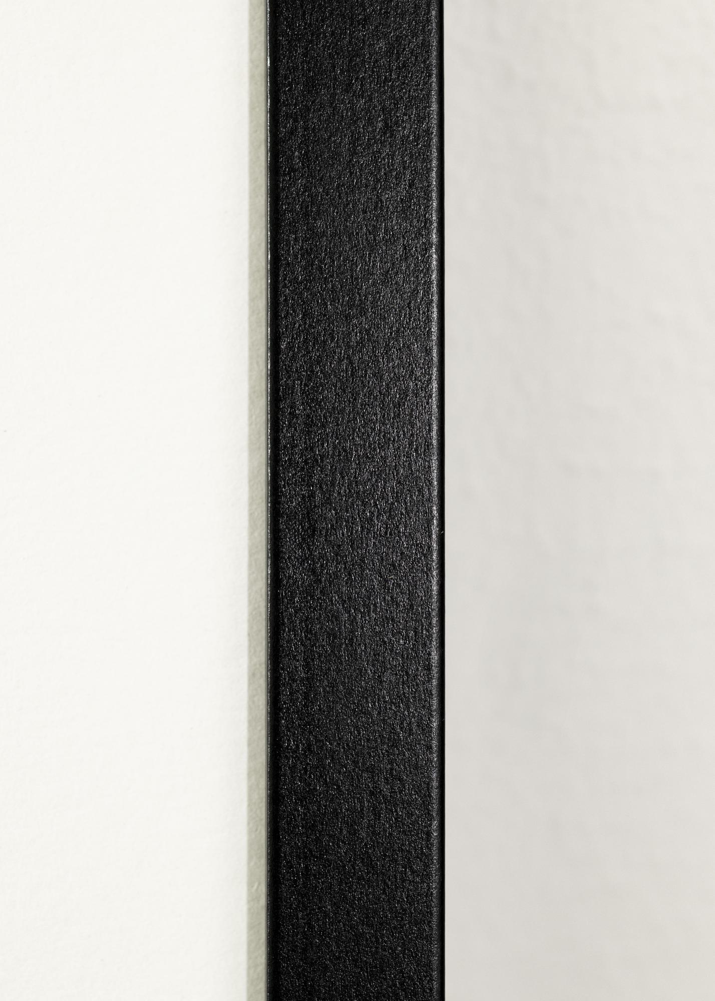 Okvir je izdelan iz lesa in ima okvirni trak, ki meri 12 mm v širino in globino 16 mm. To daje stabilen in trden občutek, hkrati pa ohranja vitko profil. Črna barva daje brezčasno eleganco, ki se prilega večini stilov notranje opreme.
