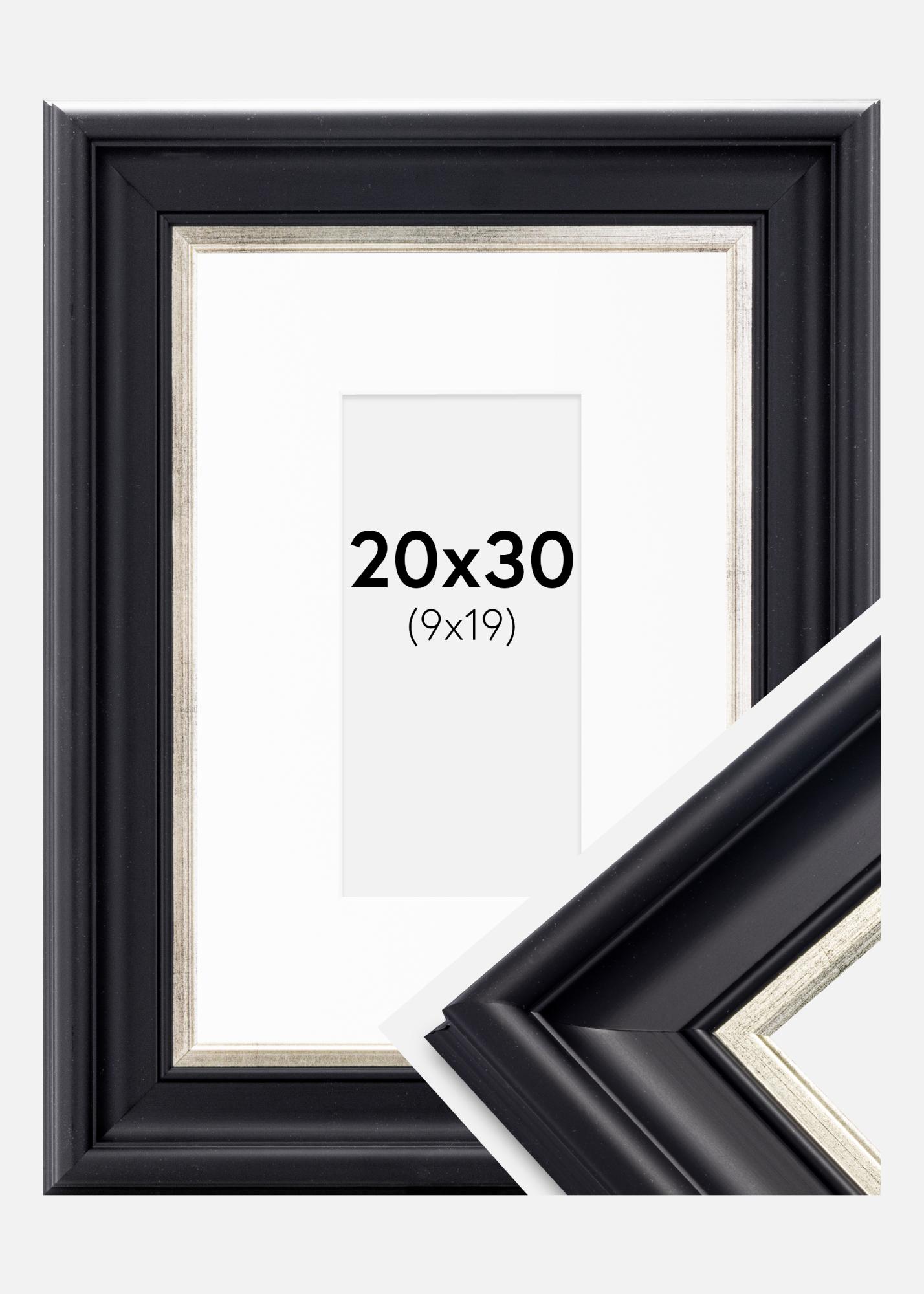 Okvir Dalarna Črno-Srebrna 20x30 cm - Paspartŭ Bela 10x20 cm