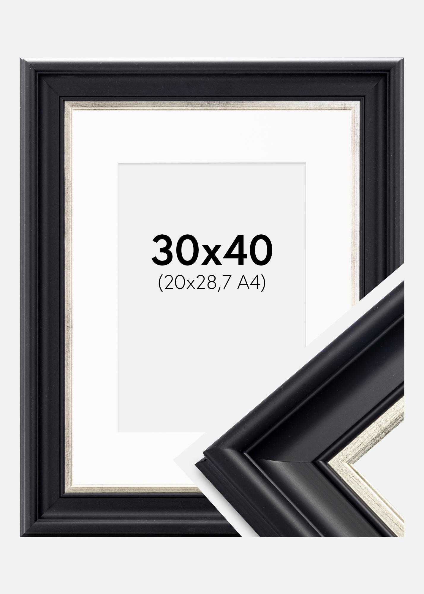 Okvir Dalarna Črno-Srebrna 30x40 cm - Paspartŭ Bela 21x29,7 cm (A4)