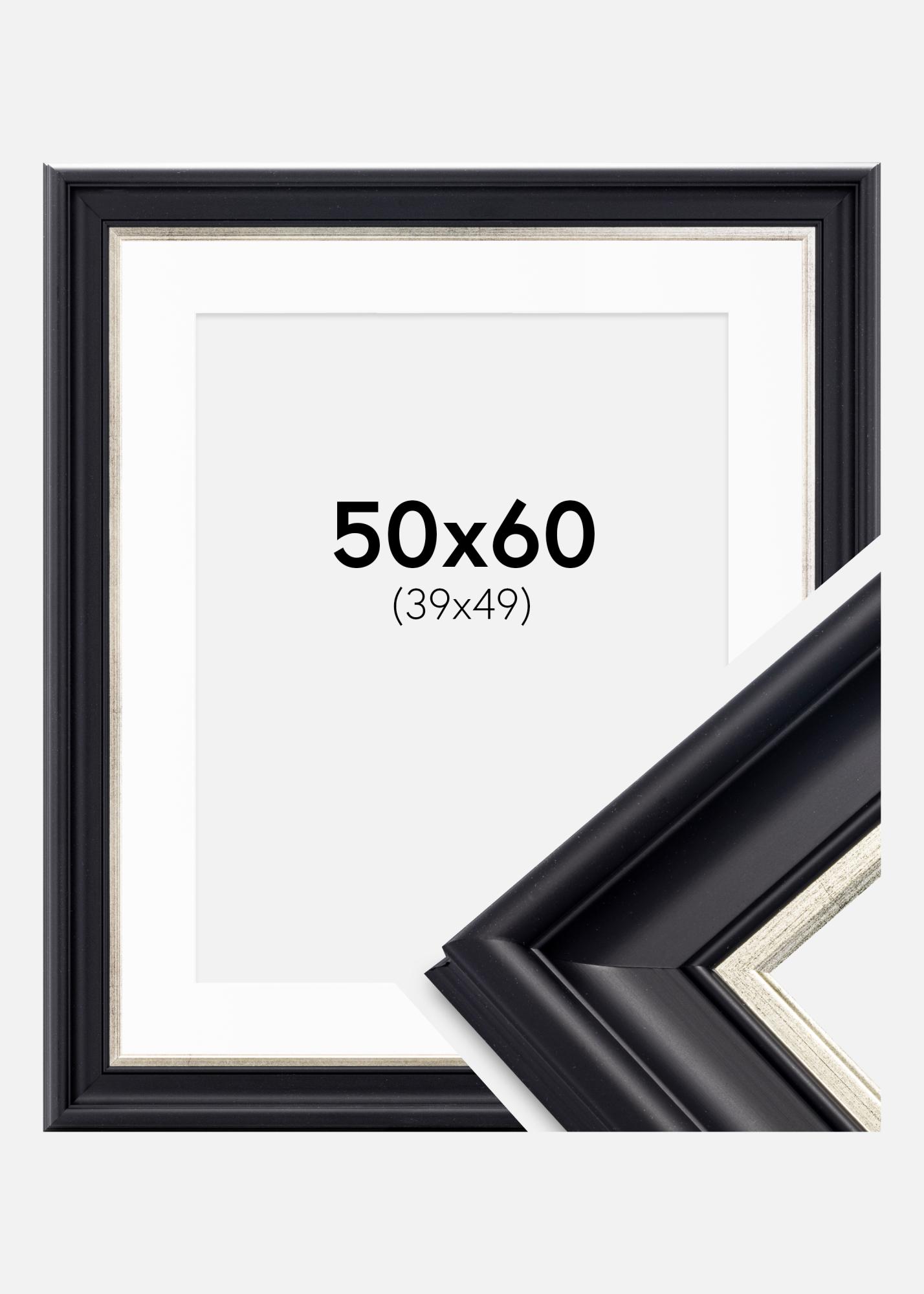 Okvir Dalarna Črno-Srebrna 50x60 cm - Paspartŭ Bela 40x50 cm