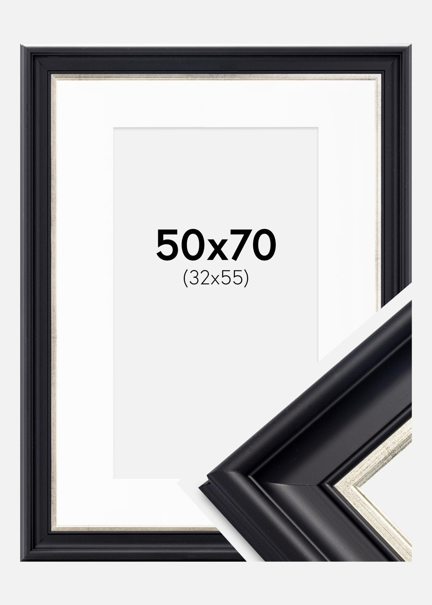 Okvir Dalarna Črno-Srebrna 50x70 cm - Paspartŭ Bela 33x56 cm